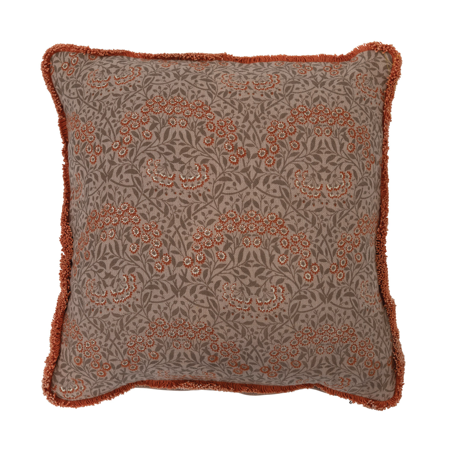 Catalog Name: 16" Square Cotton Pillow w/ Metallic Printed Floral Pattern & Eyelash Fringe, Multi Color