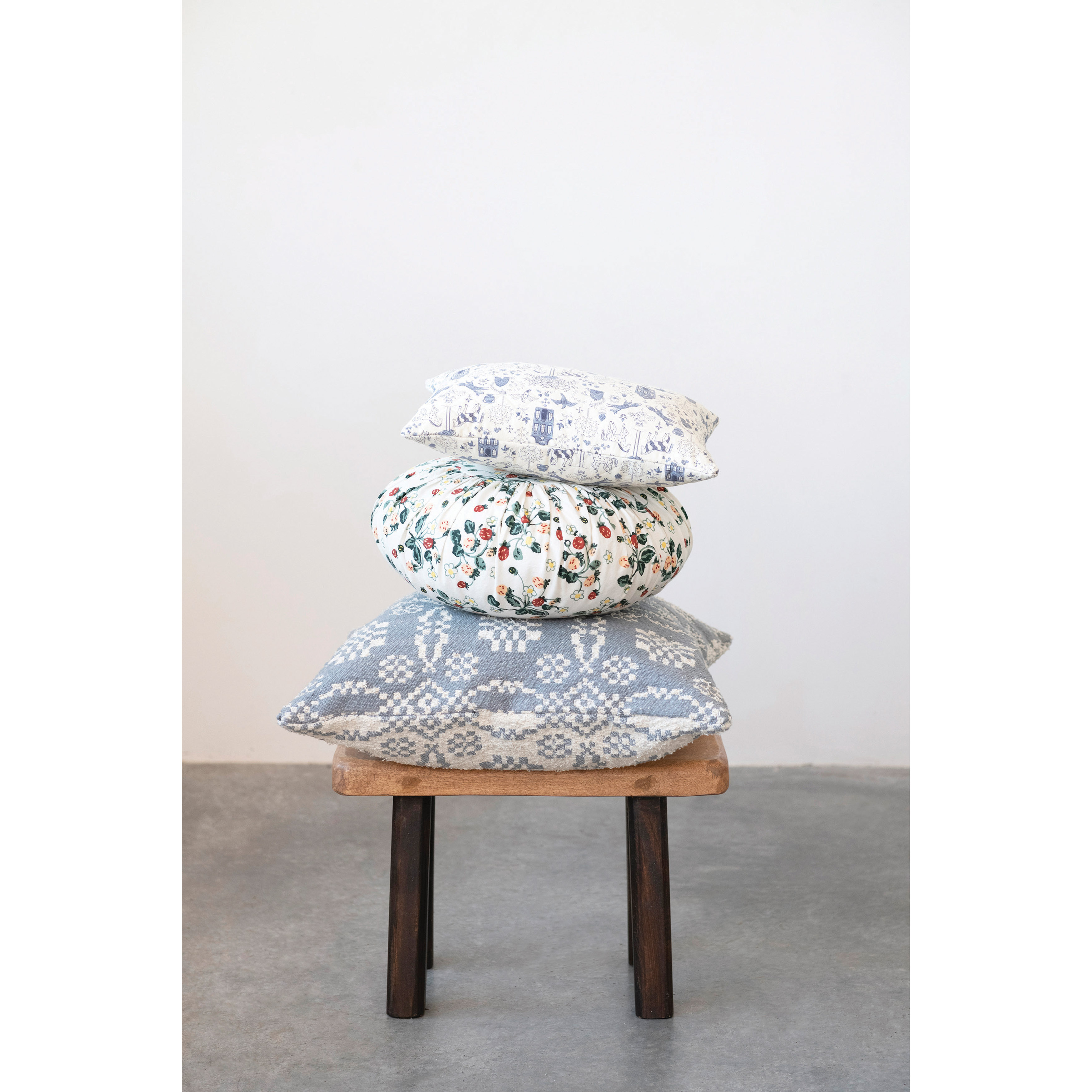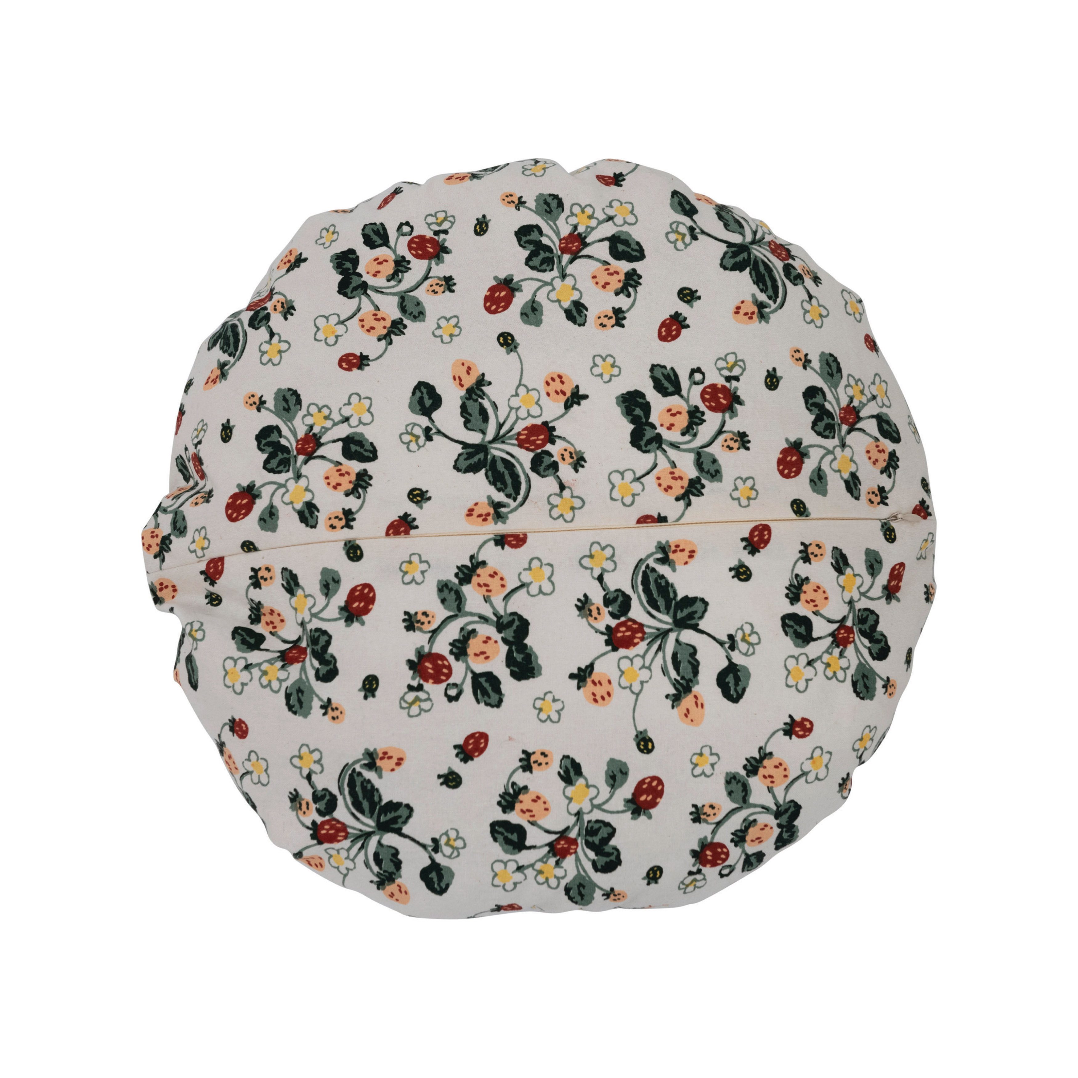 Catalog Name: 16" Round Cotton Pleated Pillow w/ Strawberry Floral Pattern, Multi Color ©