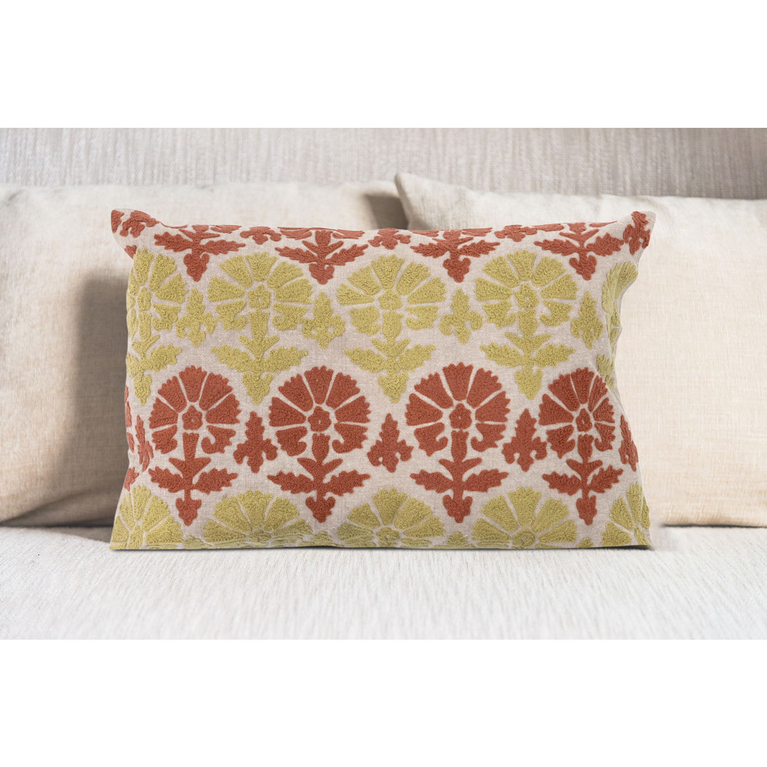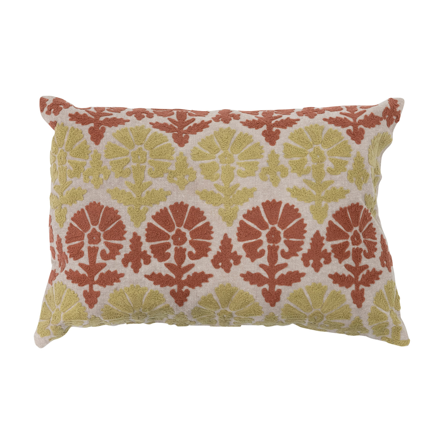 Catalog Name: 20"L x 14"H Cotton Embroidered Chambray Lumbar Pillow w/ Pattern, Multi Color