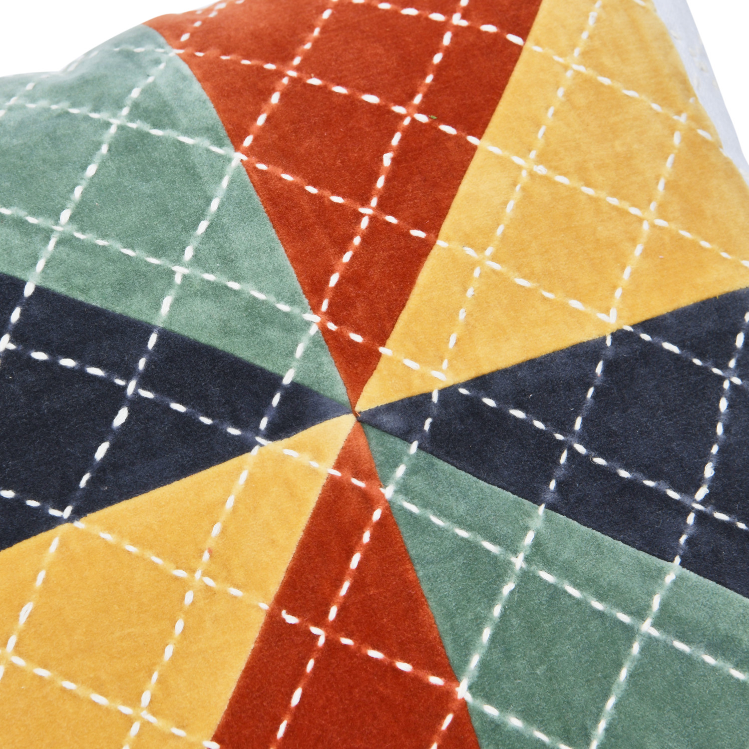 18" Velvet Patchwork Pillow w/ Kantha Stitch, Polyester Fill