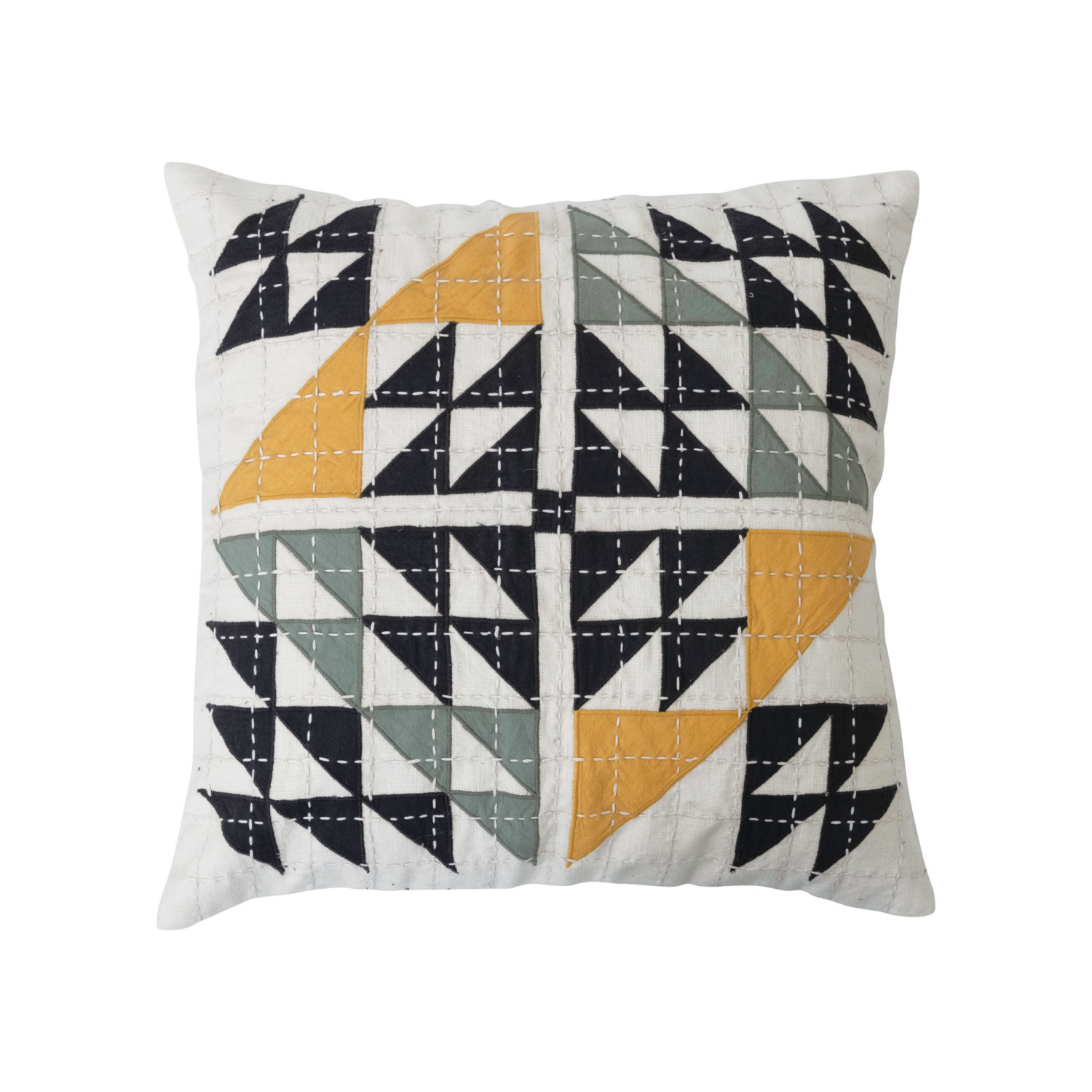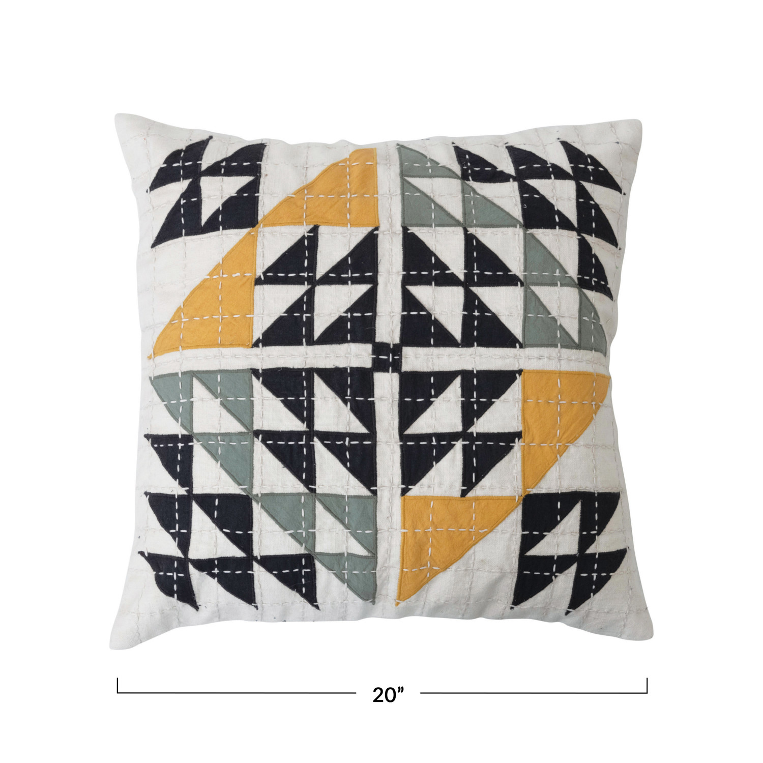 20" Cotton Patchwork Pillow w/ Kantha Stitch, Polyester Fill