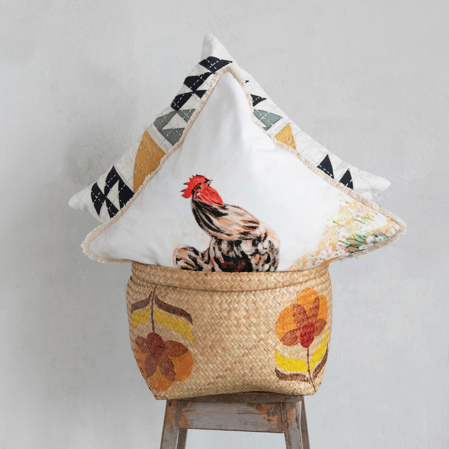 Catalog Name: 20" Square Cotton Patchwork Pillow w/ Hand-Embroidered Kantha Stitch, Multi Color