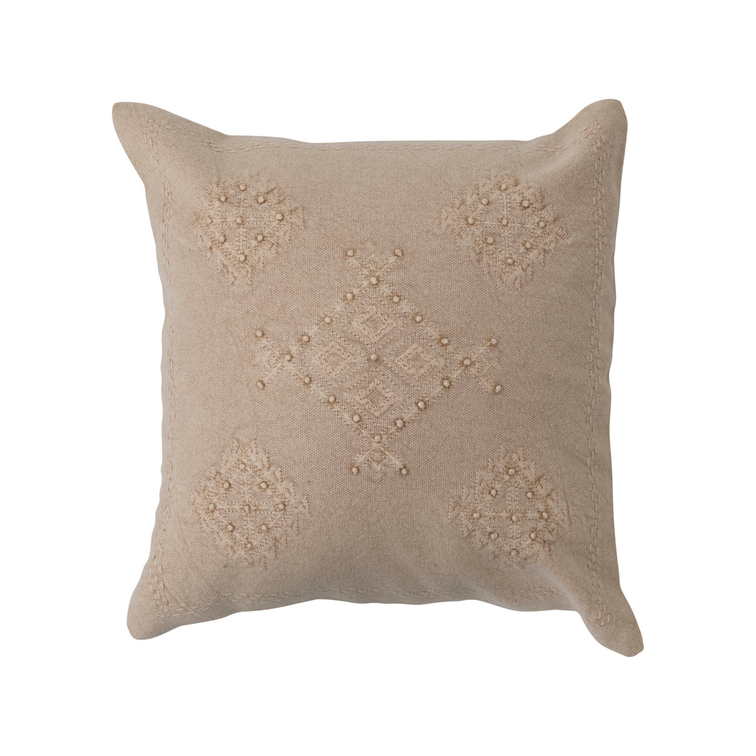 18" Woven Cotton Pillow w/ Embroidery & French Knots, Polyester Fill
