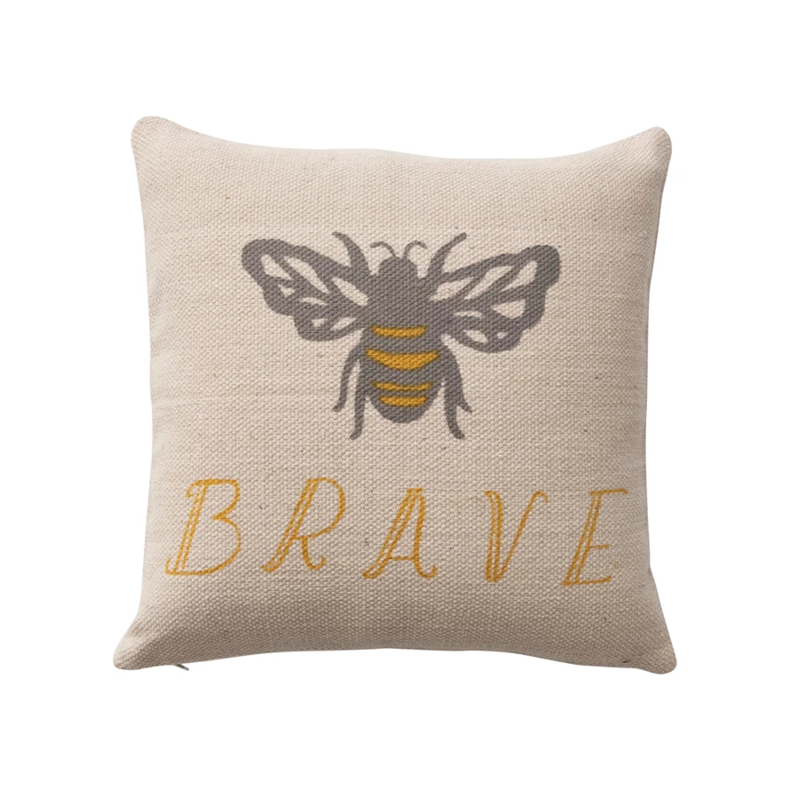 Catalog Name: 18" Square Cotton Pillow w/ Bee "Brave", Multi Color ©
