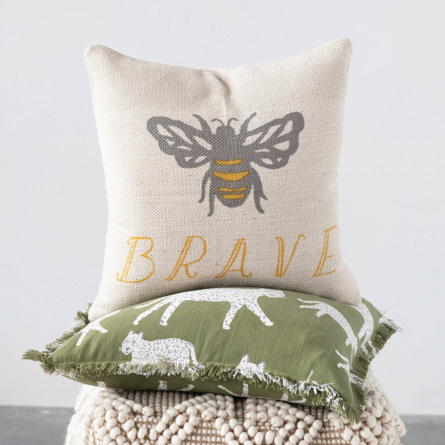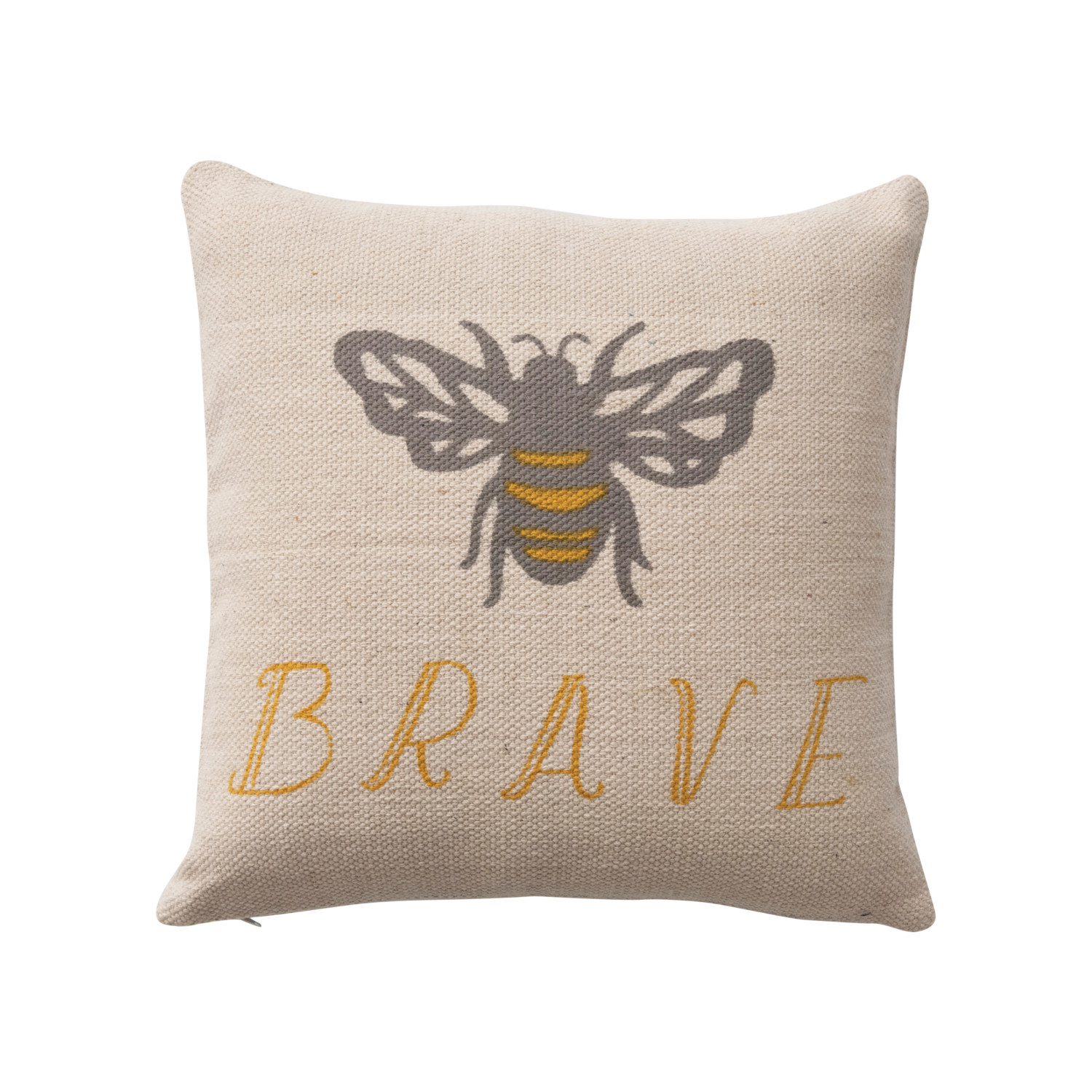 Catalog Name: 18" Square Cotton Pillow w/ Bee "Brave", Multi Color ©