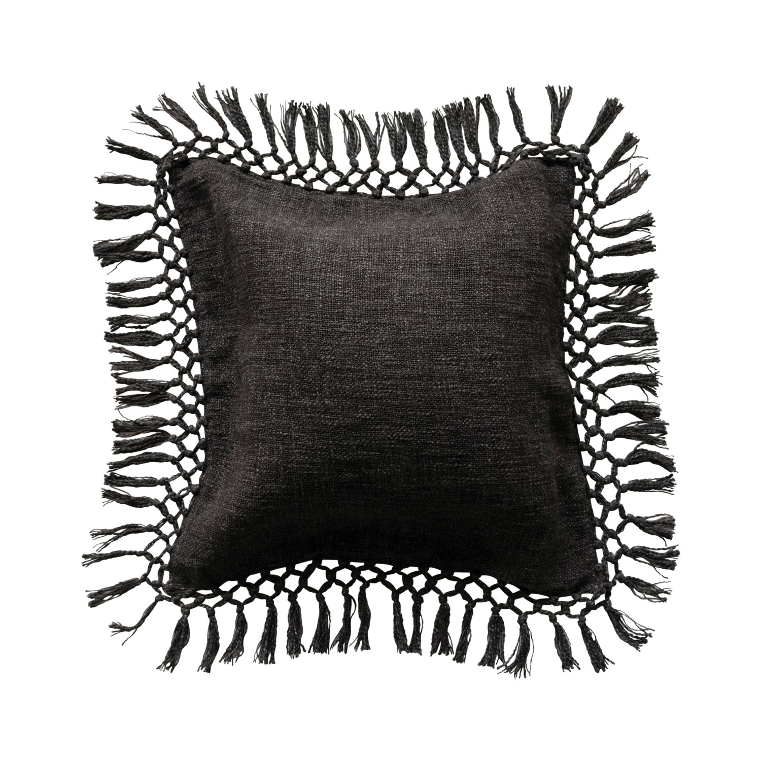 Catalog Name: 20" Square Cotton Slub Pillow w/ Crochet & Fringe, Black