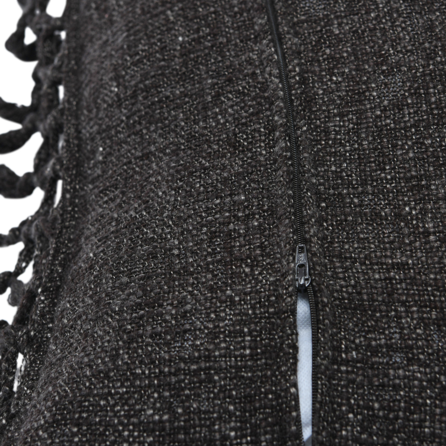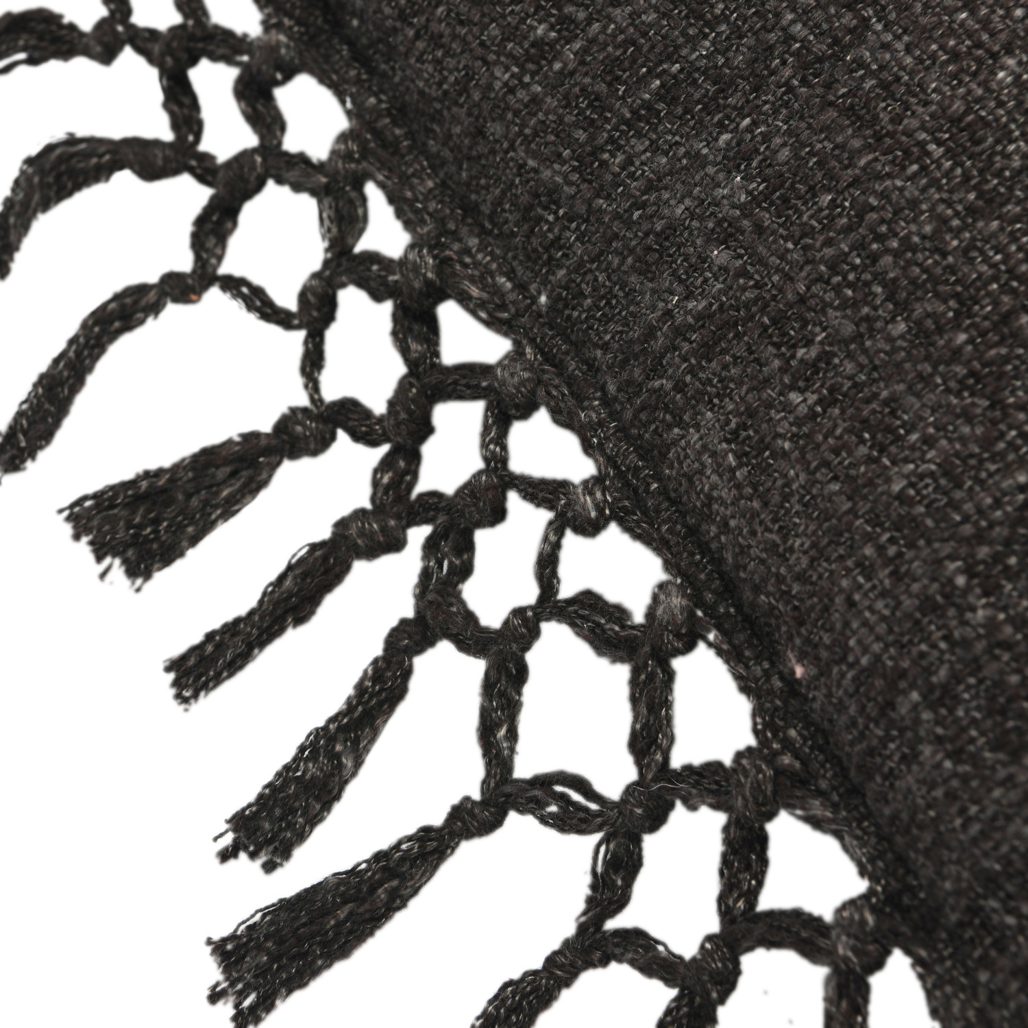 This rustic throw pillow cover features soft cotton slub construction, finished with intricately woven crochet and fringe. Black cotton slub throw pillow with crochet and fringe. Express your constantly evolving style with the simple addition of this eye-catching pillow. Removable cotton throw pillow cover with polyester insert; Hand wash, warm iron if needed.