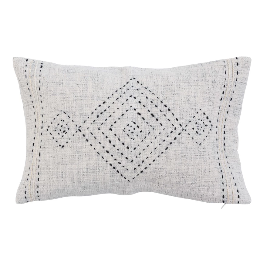 Catalog Name: 20"L x 12"H Cotton Lumbar Pillow w/ Hand-Embroidered Kantha Stitch & Gold Thread, Natural & Black