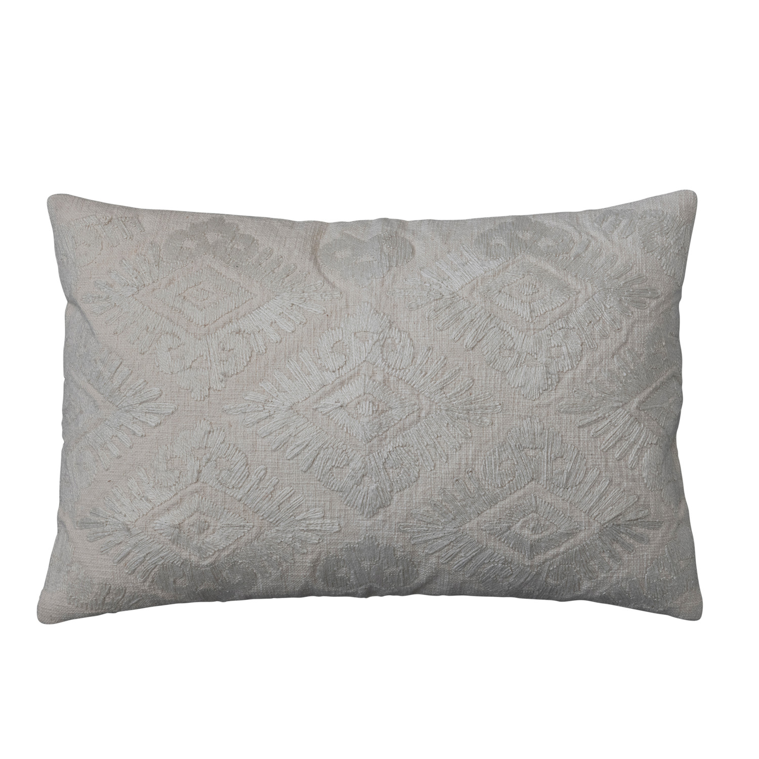Catalog Name: 24"L x 16"H Cotton Slub Embroidered Lumbar Pillow w/ Pattern & Chambray Back, Cream Color