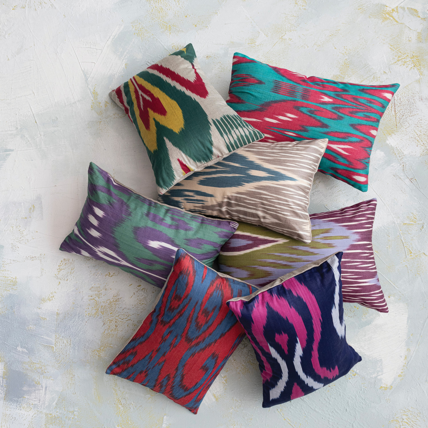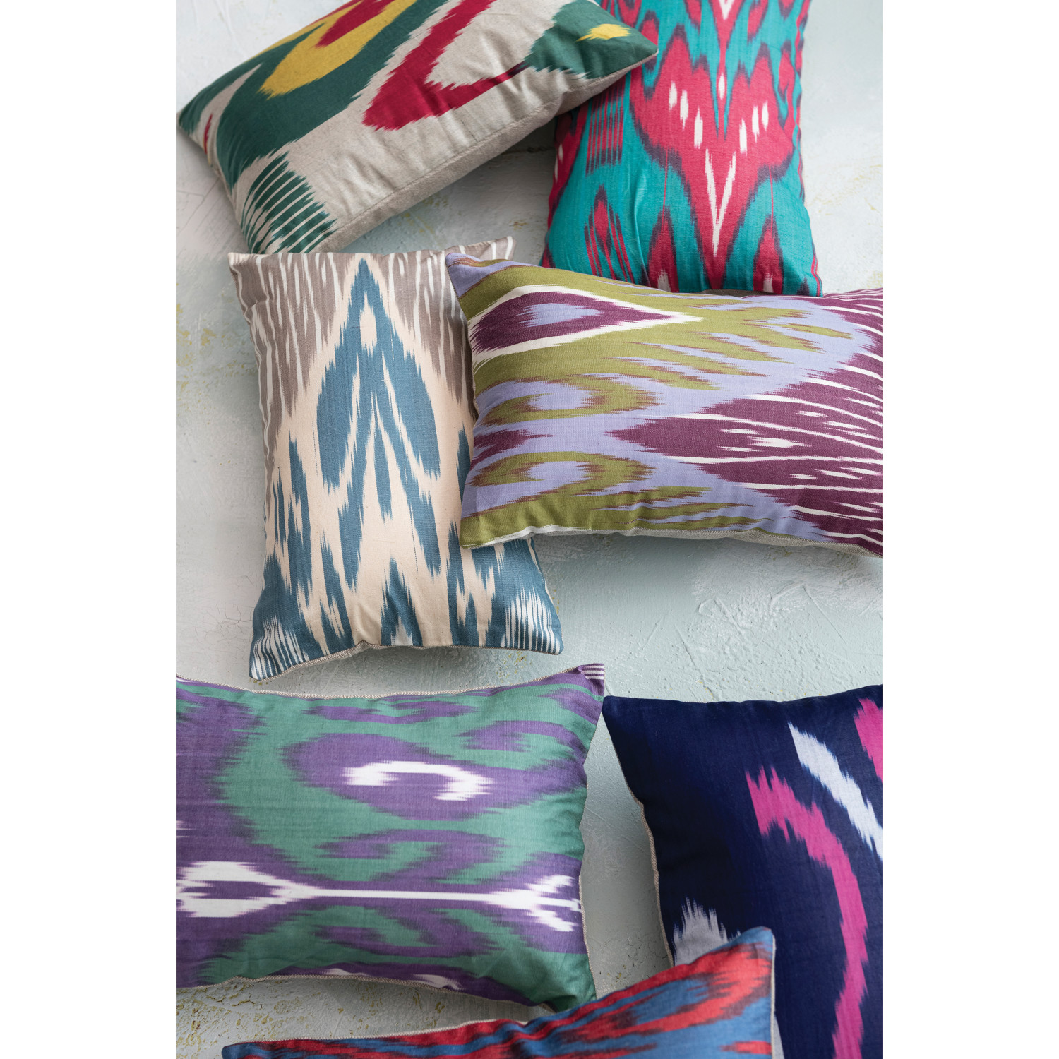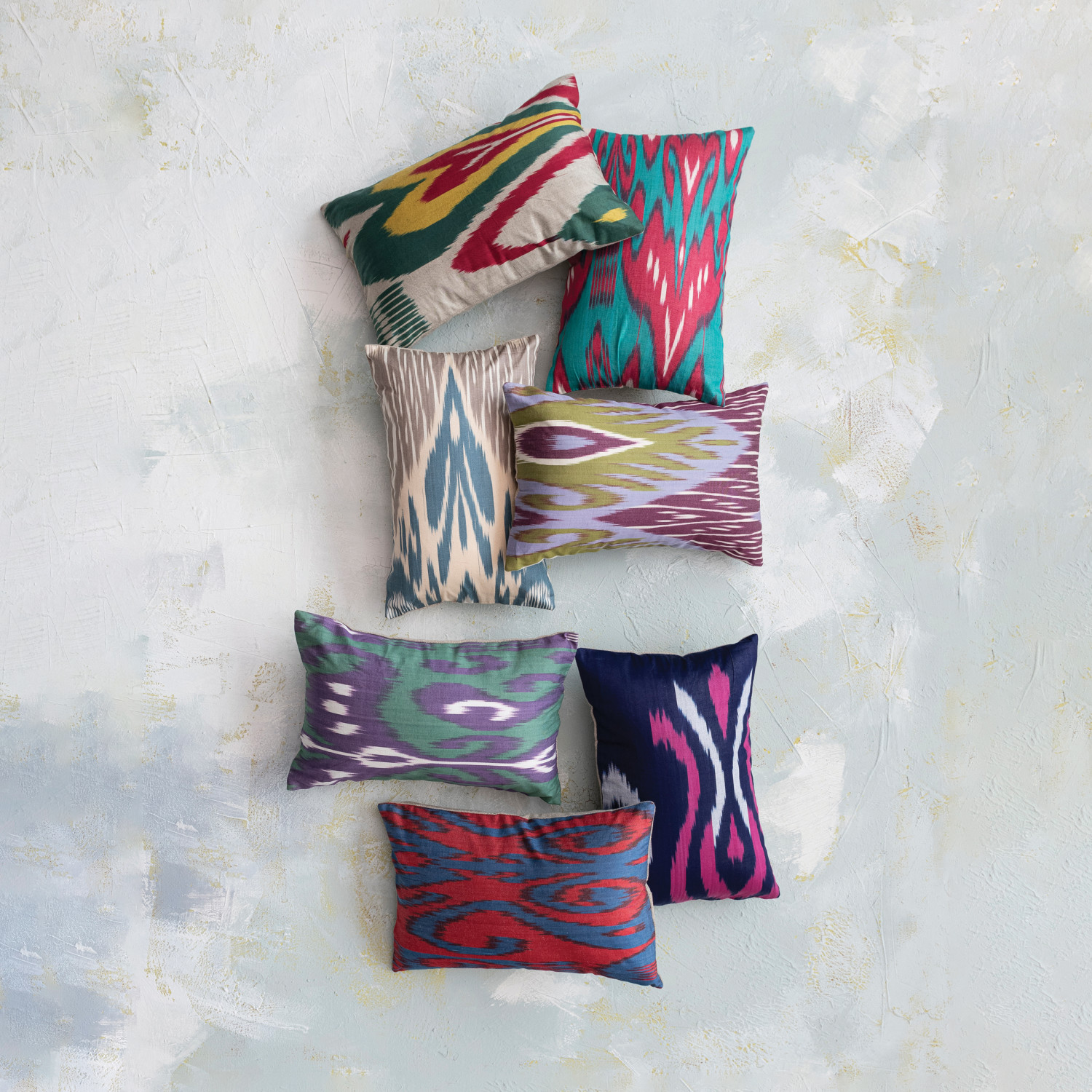 Our thoughtfully curated collection of throw pillows showcases a wide array of lush woven textures, prints, embroidery, and silhouettes to create the picture-perfect nook. Explore a variety of plush accents to transform a house into a home including throw pillows, lumbar pillows, bolster pillows, down and polyfill inserts, and so much more. Choose from a vast array of materials from supple velvet and handwoven cotton to embroidered wool and textural boucle, and styles from mid-century modern and classic farmhouse to contemporary boho and vintage glam. Add a dash of relaxation and sophistication to a lounge space or bedroom to curate a warm and welcoming ambiance that is guaranteed to impress. This one-of-a-kind throw pillow features a bold, naturally variating ikat design. Display in a bedroom or living space of any style from eclectic to boho. Machine Wash Warm or Hand Wash. Made from 100% cotton.