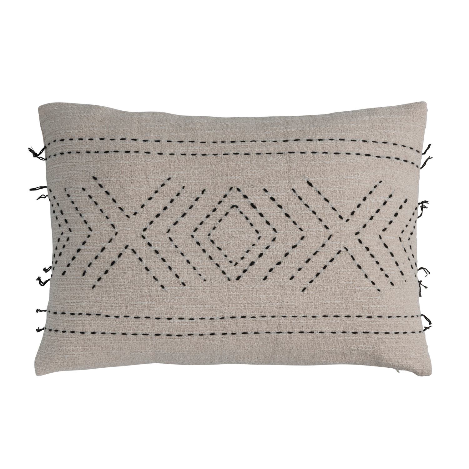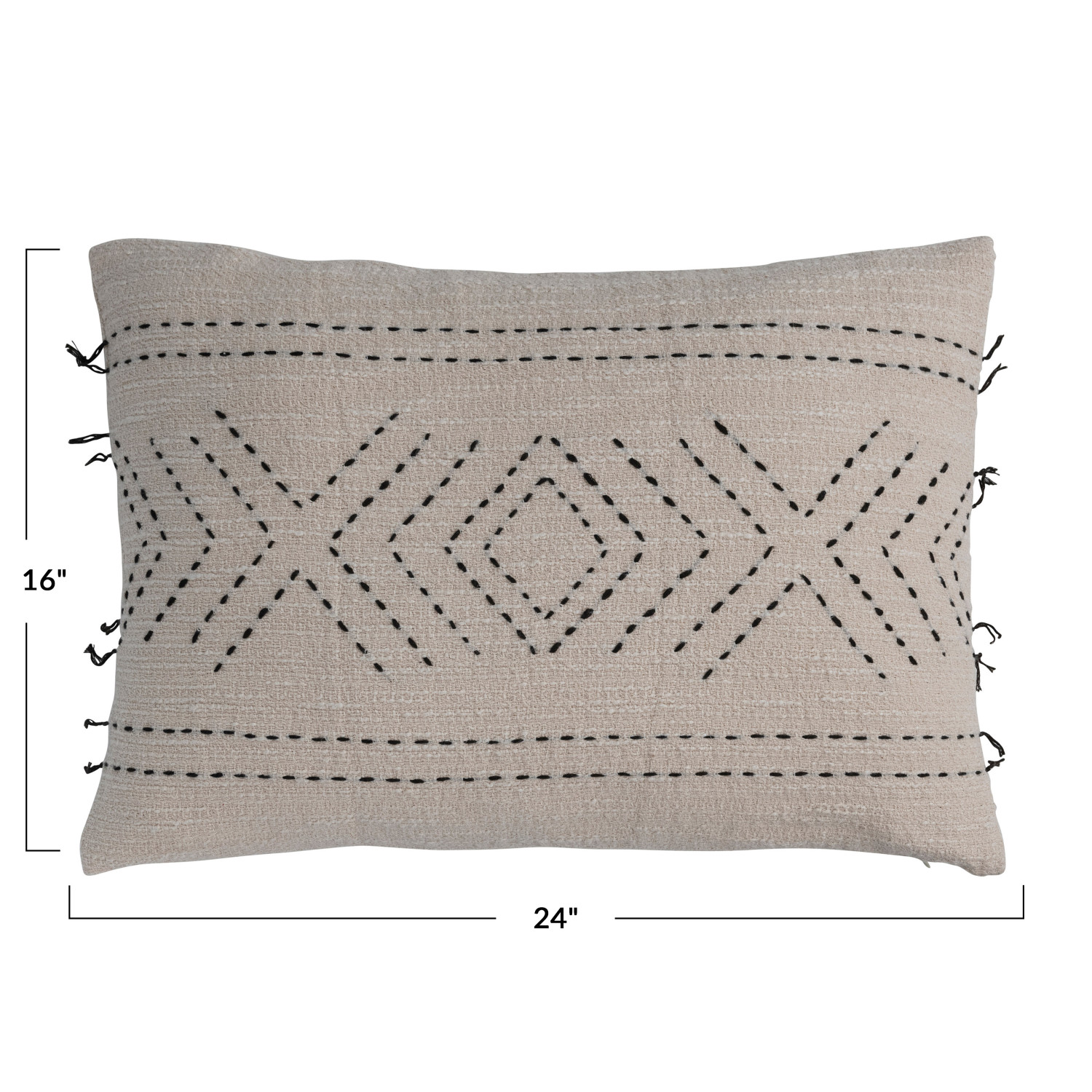 Catalog Name: 24"L x 16"H Cotton Lumbar Pillow w/ Hand-Embroidered Kantha Stitch, Natural & Black