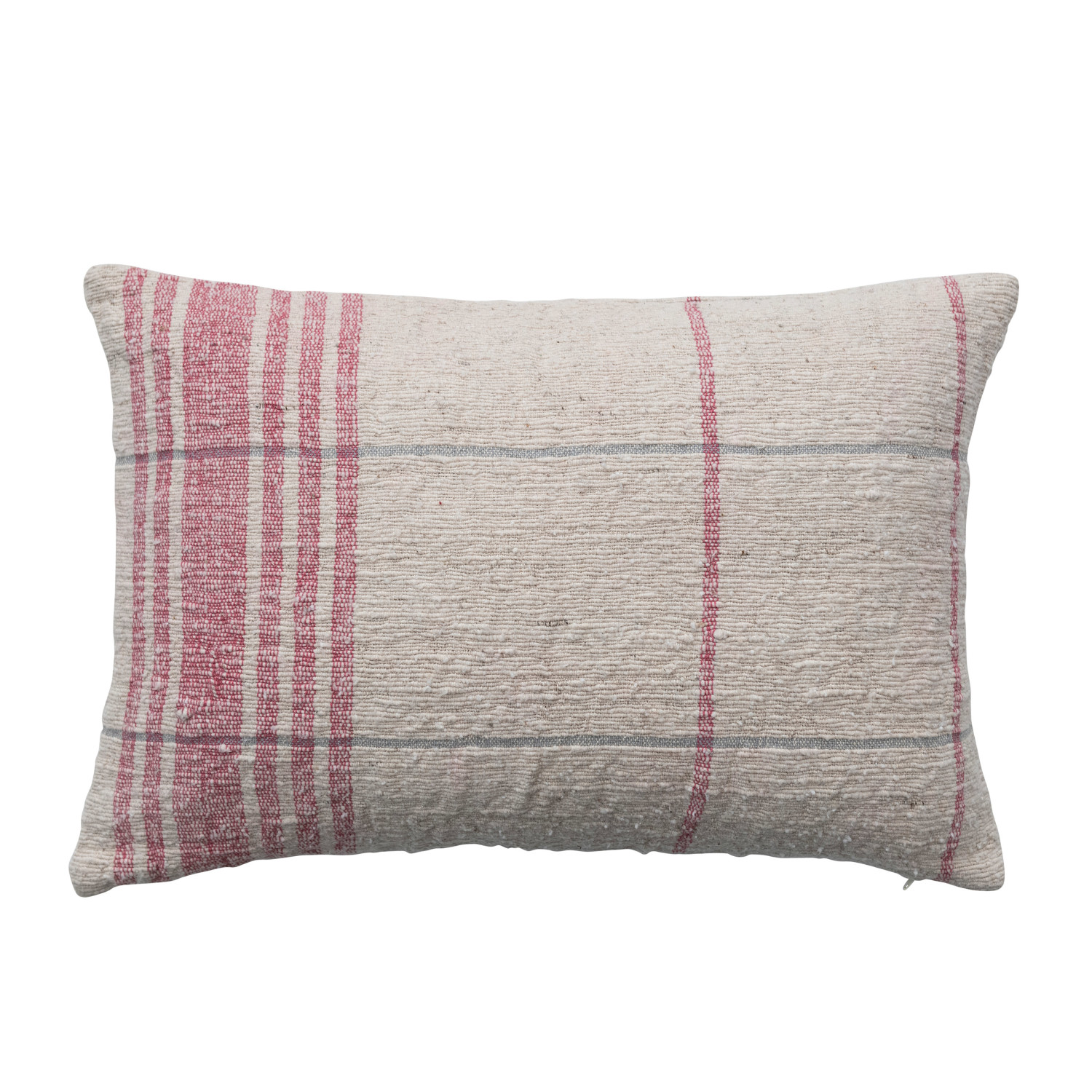 Catalog Name: 24"L x 16"H Woven Cotton Slub Lumbar Pillow w/ Grid Pattern, Natural & Red