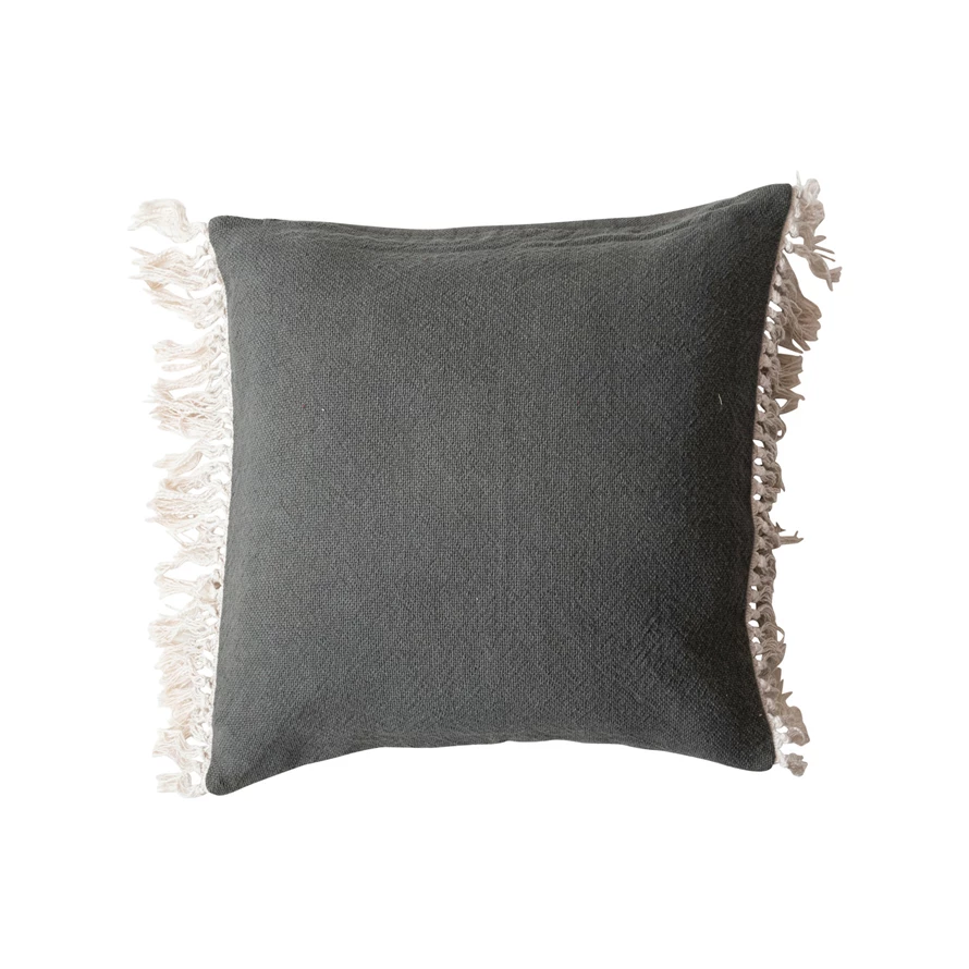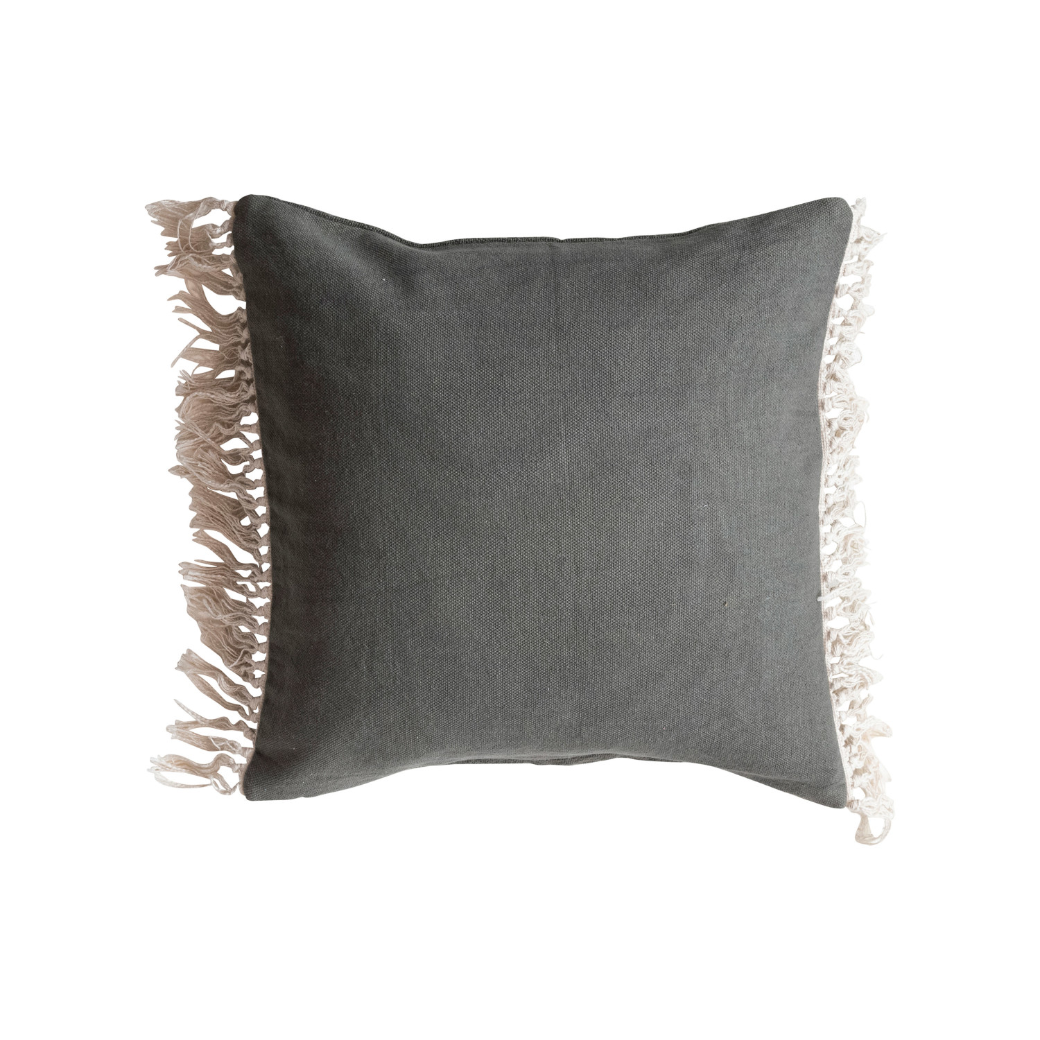 Catalog Name: 20" Square Cotton Pillow w/ Fringe, Grey & Natural