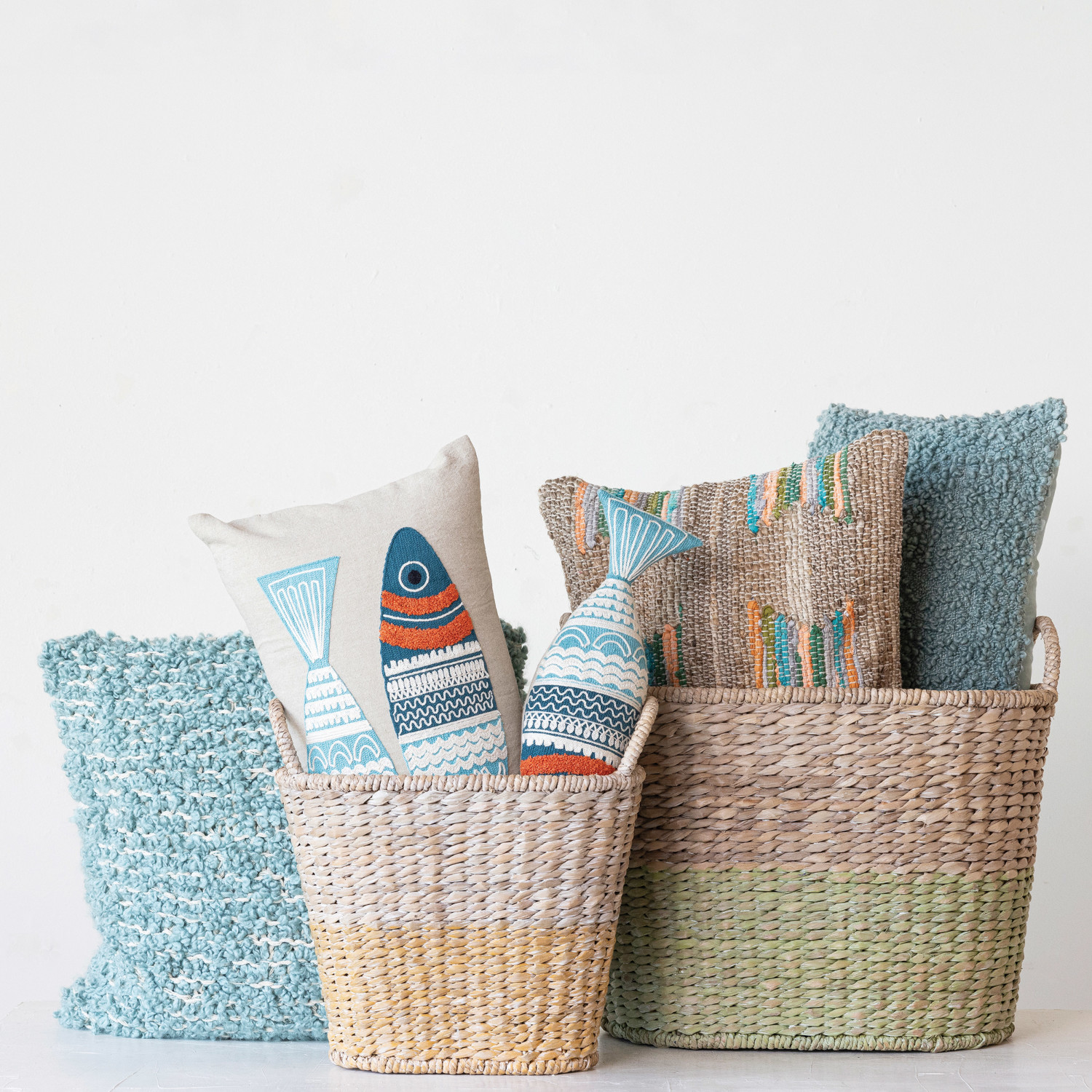 Catalog Name: 24"L x 16"H Hand-Woven Jute & Cotton Chindi Lumbar Pillow, Multi Color (Each One Will Vary)