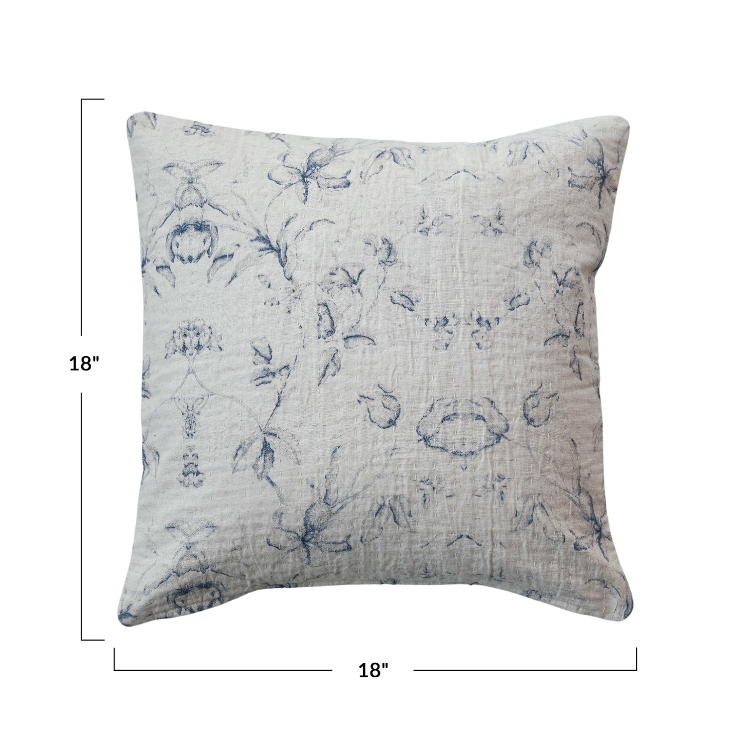 18" Square Cotton & Linen Printed Pillow (Each One Will Vary)