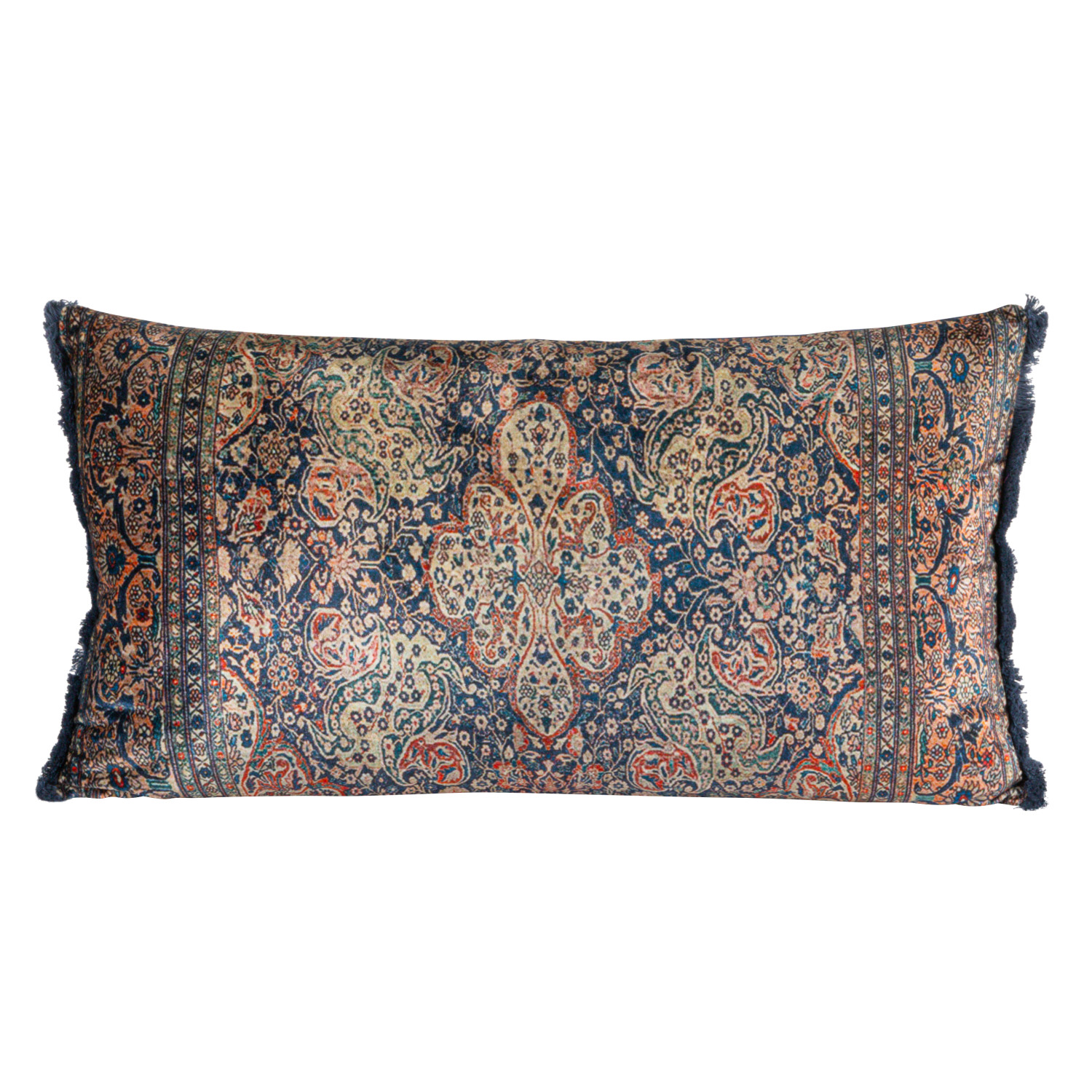 Catalog Name: 26"L x 14"H Cotton Velvet Printed Lumbar Pillow w/ Vintage Carpet Pattern & Fringe, Multi Color