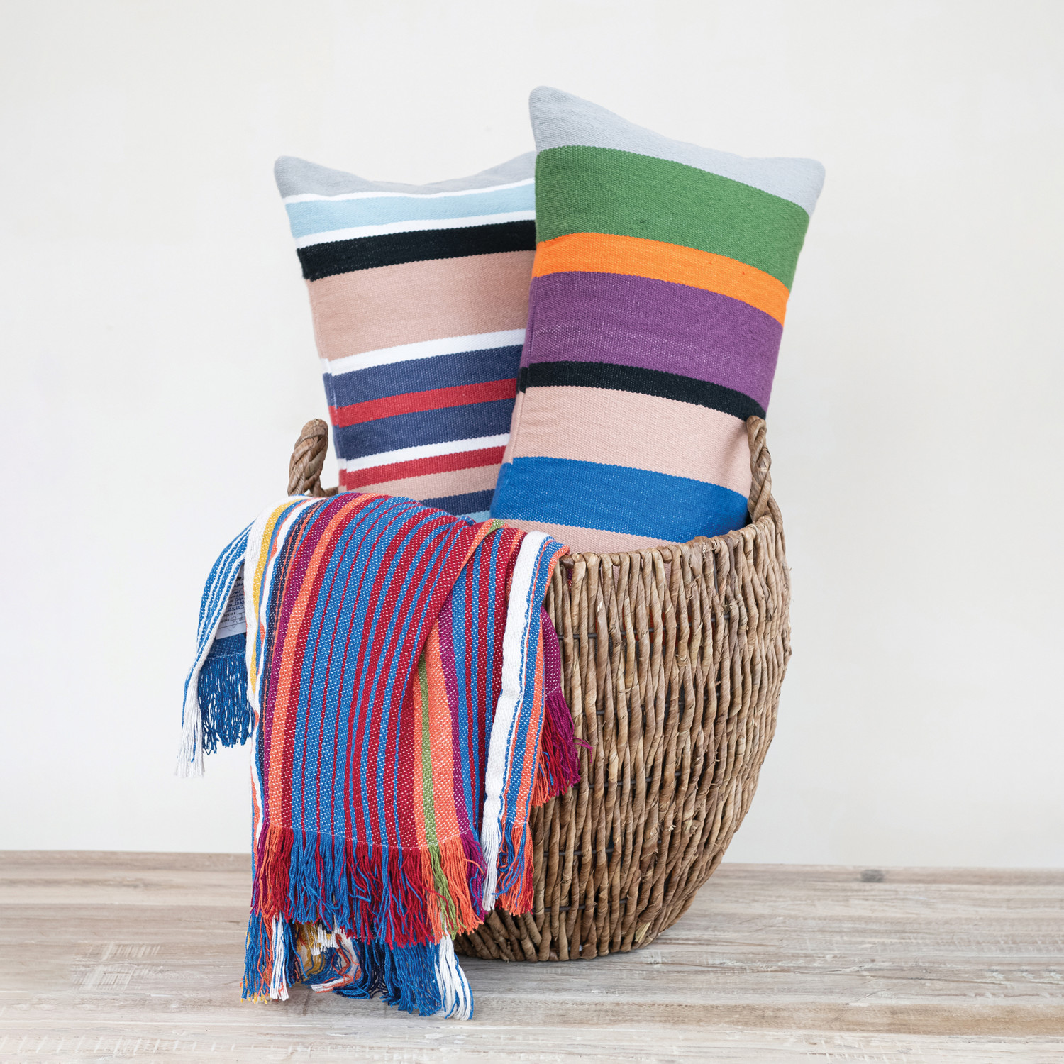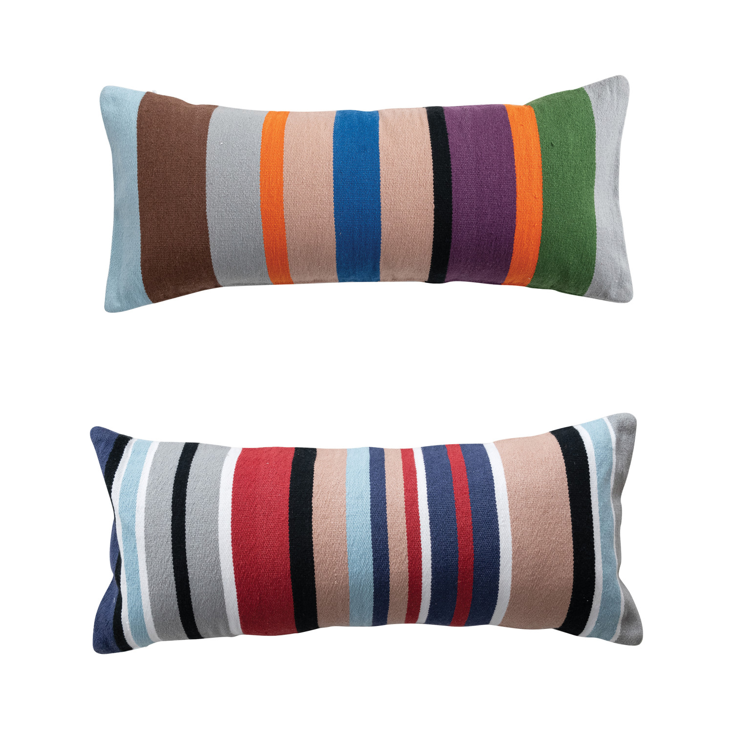 Catalog Name: 28"L x 12"H Woven Fabric Indoor/Outdoor Striped Lumbar Pillow, Multi Color, 2 Styles
