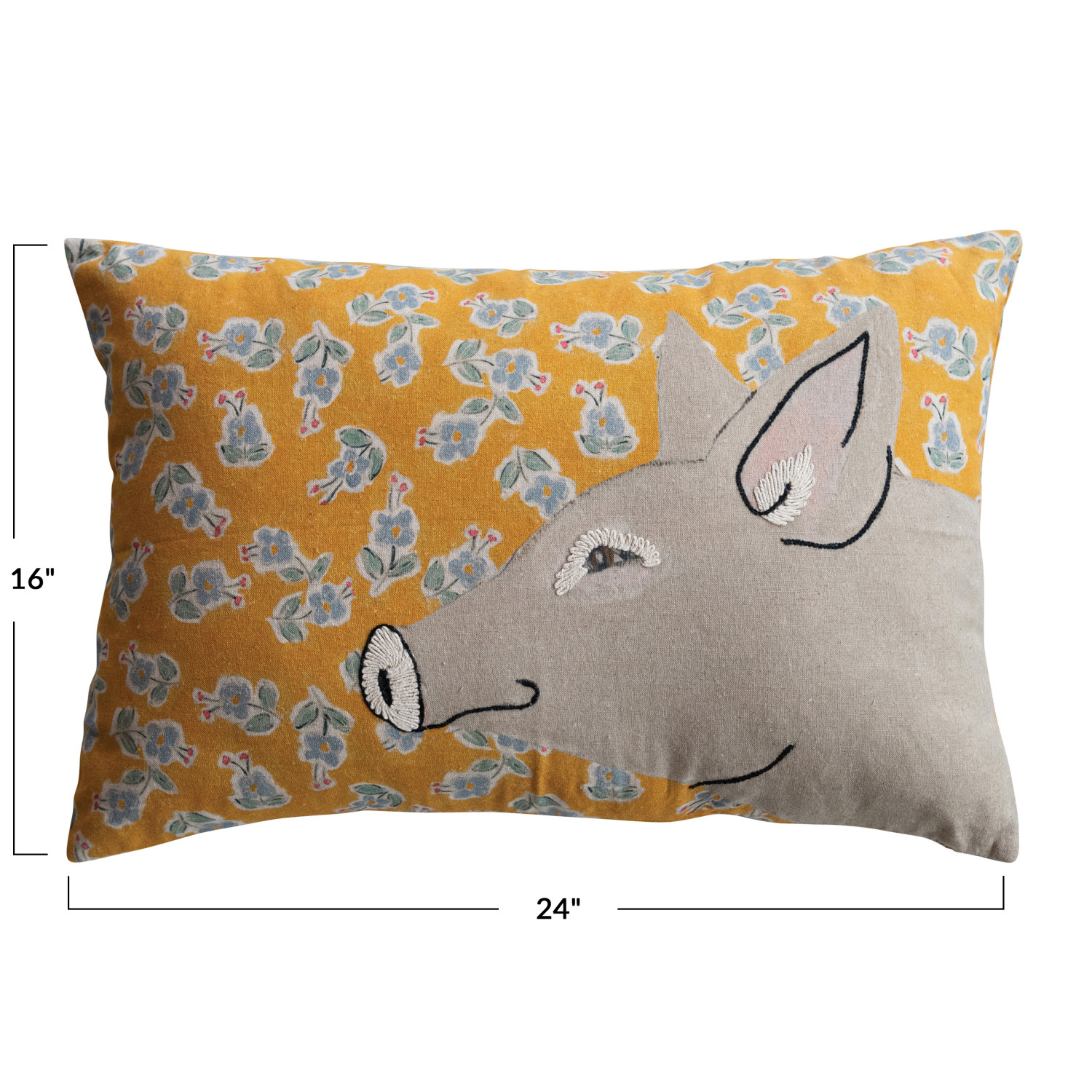 Catalog Name: 24"L x 16"H Cotton & Linen Printed Pillow w/ Pattern, Pig Image & Embroidery, Multi Color ©