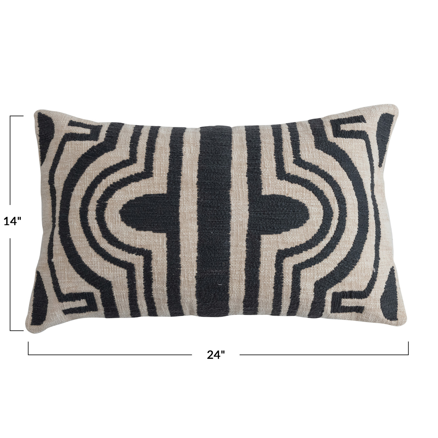 Catalog Name: 24"L x 14"H Cotton Slub Lumbar Pillow w/ Embroidered Line Design, Natural & Charcoal Color