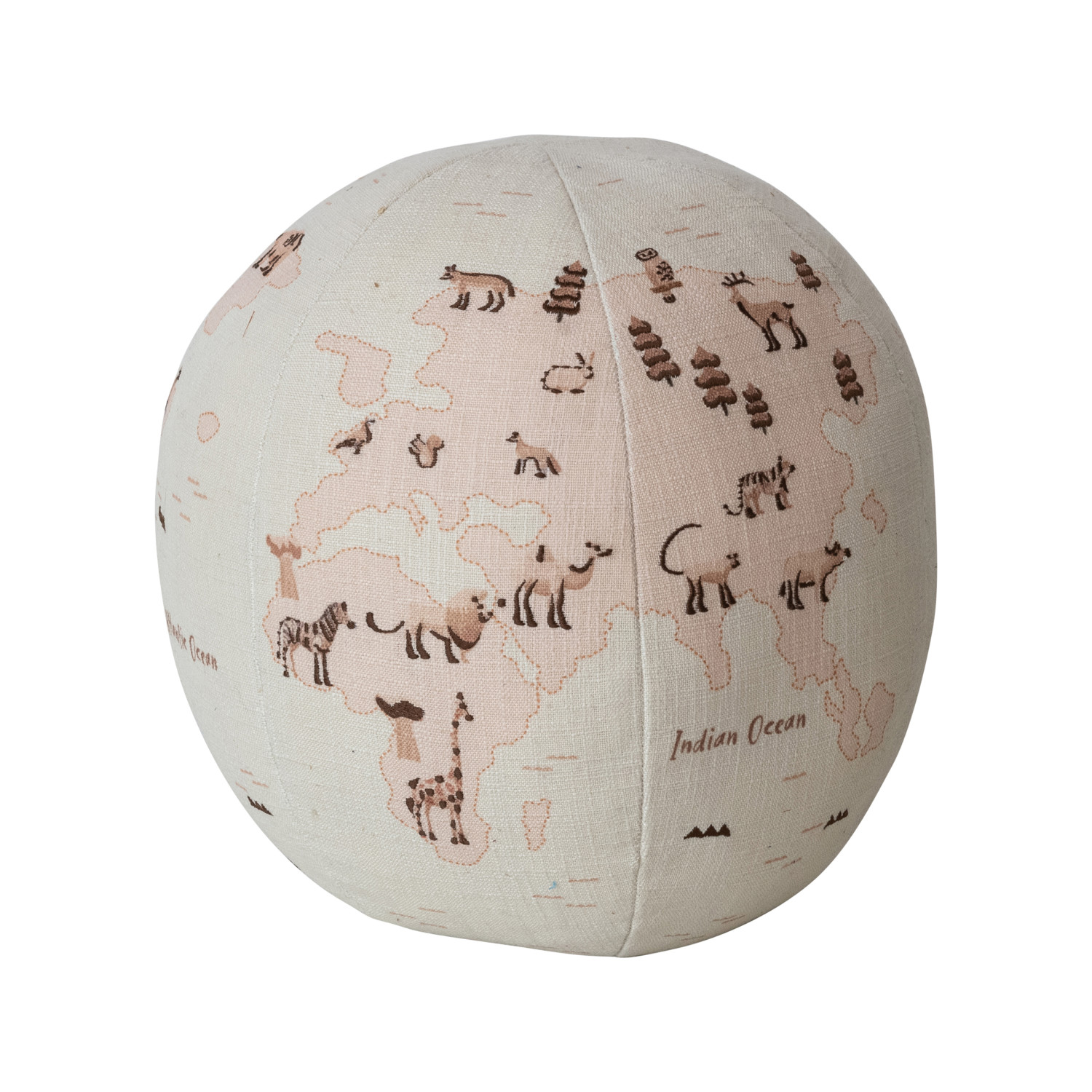 Fabric Printed Globe Shaped Orb Pillow with Animals & Embroidery