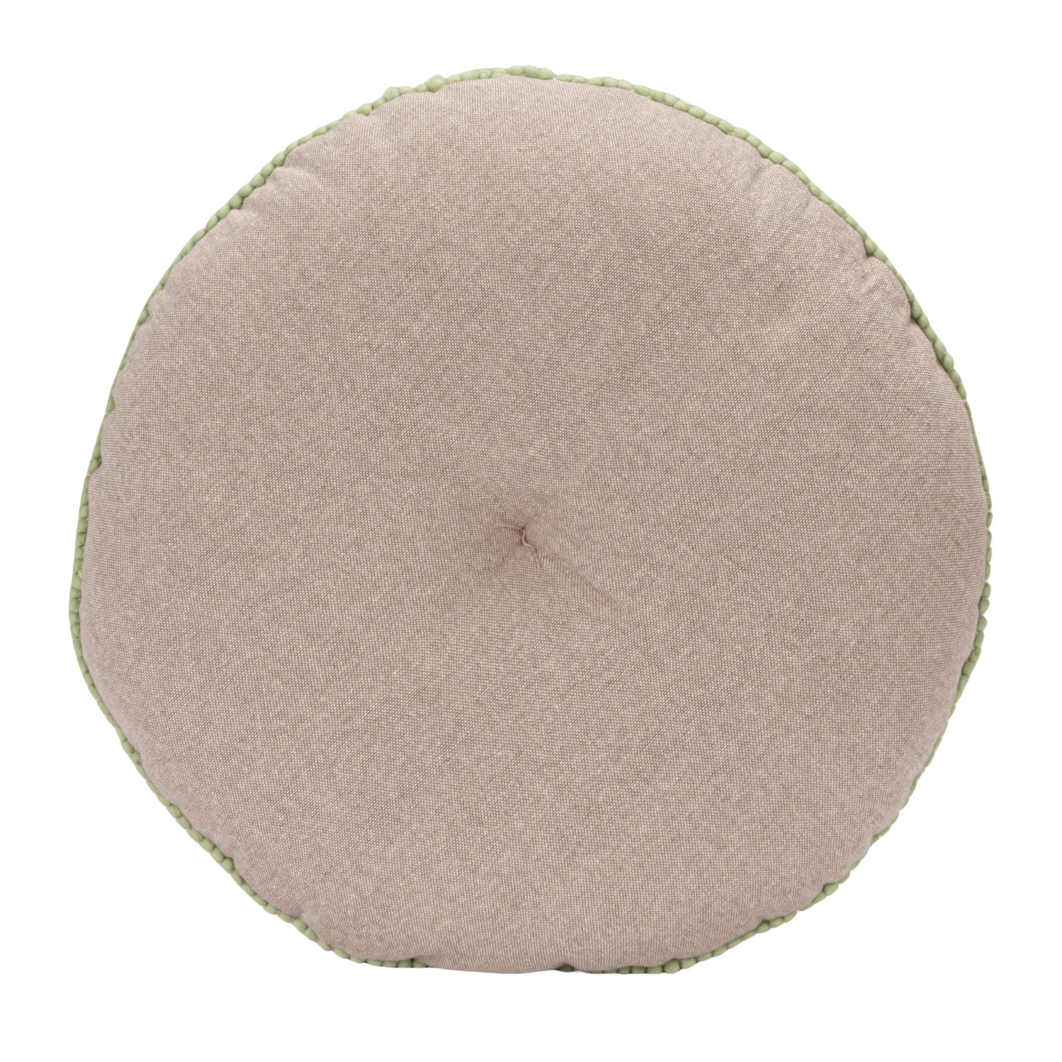 16" Round Cotton Velvet Embroidered Pillow with Mini Pom Pom Trim & Chambray Back