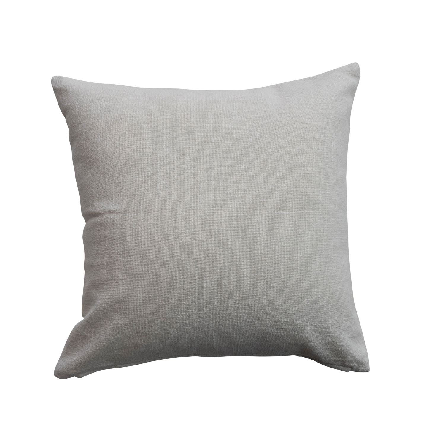 Catalog Name: 18" Square Cotton Printed Pillow w/ Embroidery "Lake People", White & Blue ©