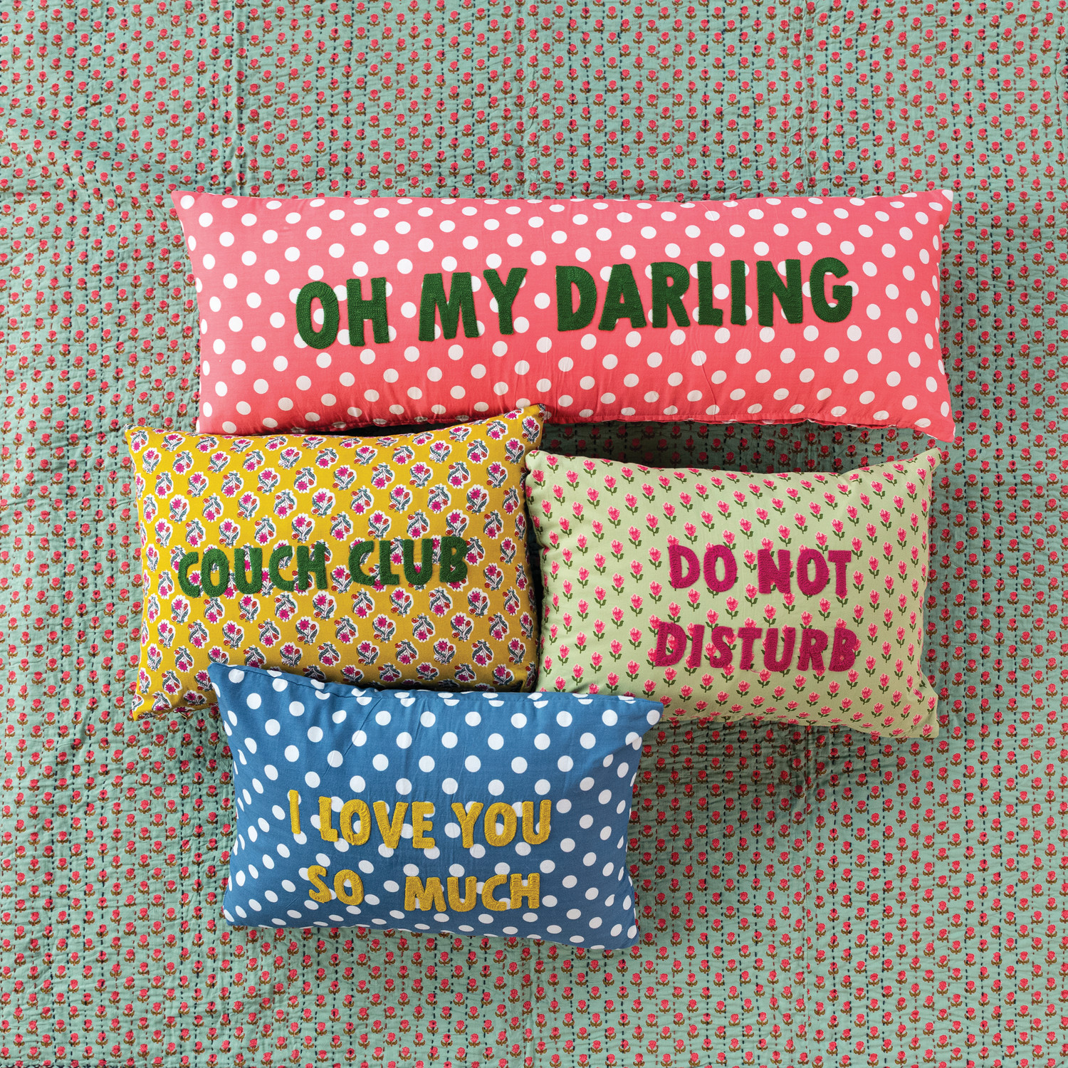 Cotton Voile Lumbar Pillow with Floral Pattern & Embroidery "Couch Club"