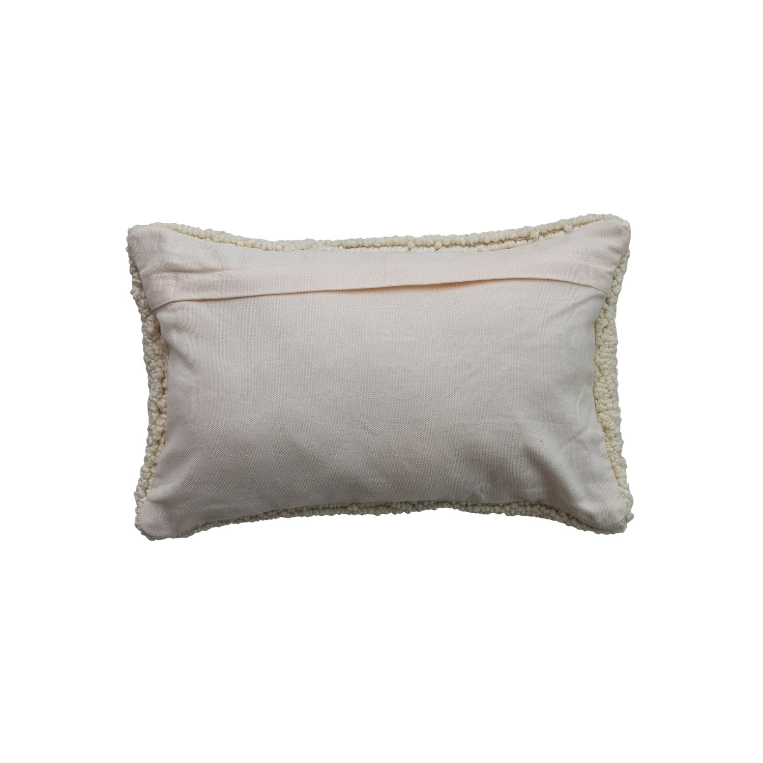 Cotton Tufted Lumbar Pillow "Happy Hour", Natural & Blue