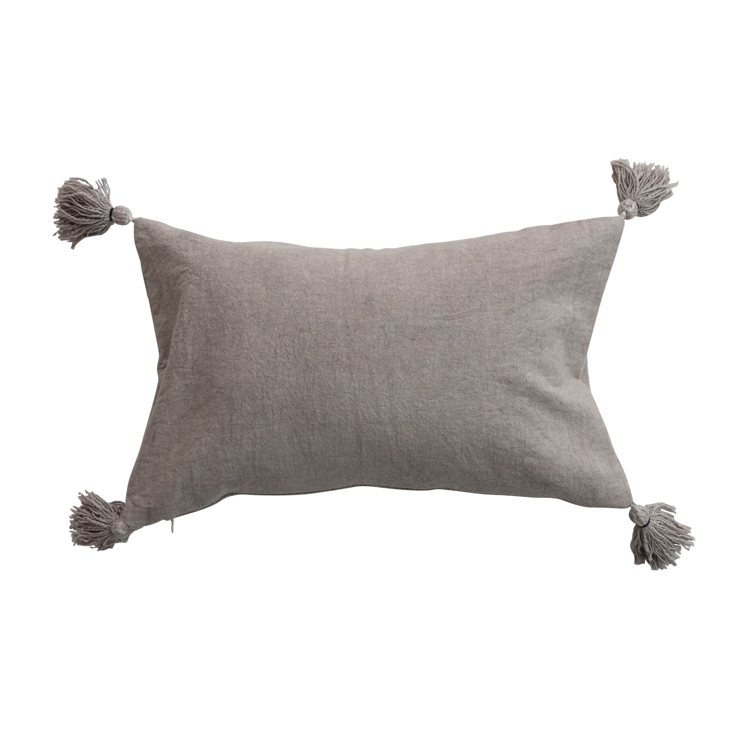 Catalog Name: 20"L x 12"H Stonewashed Cotton Slub Lumbar Pillow w/ Embroidered Flowers & Tassels, Taupe
