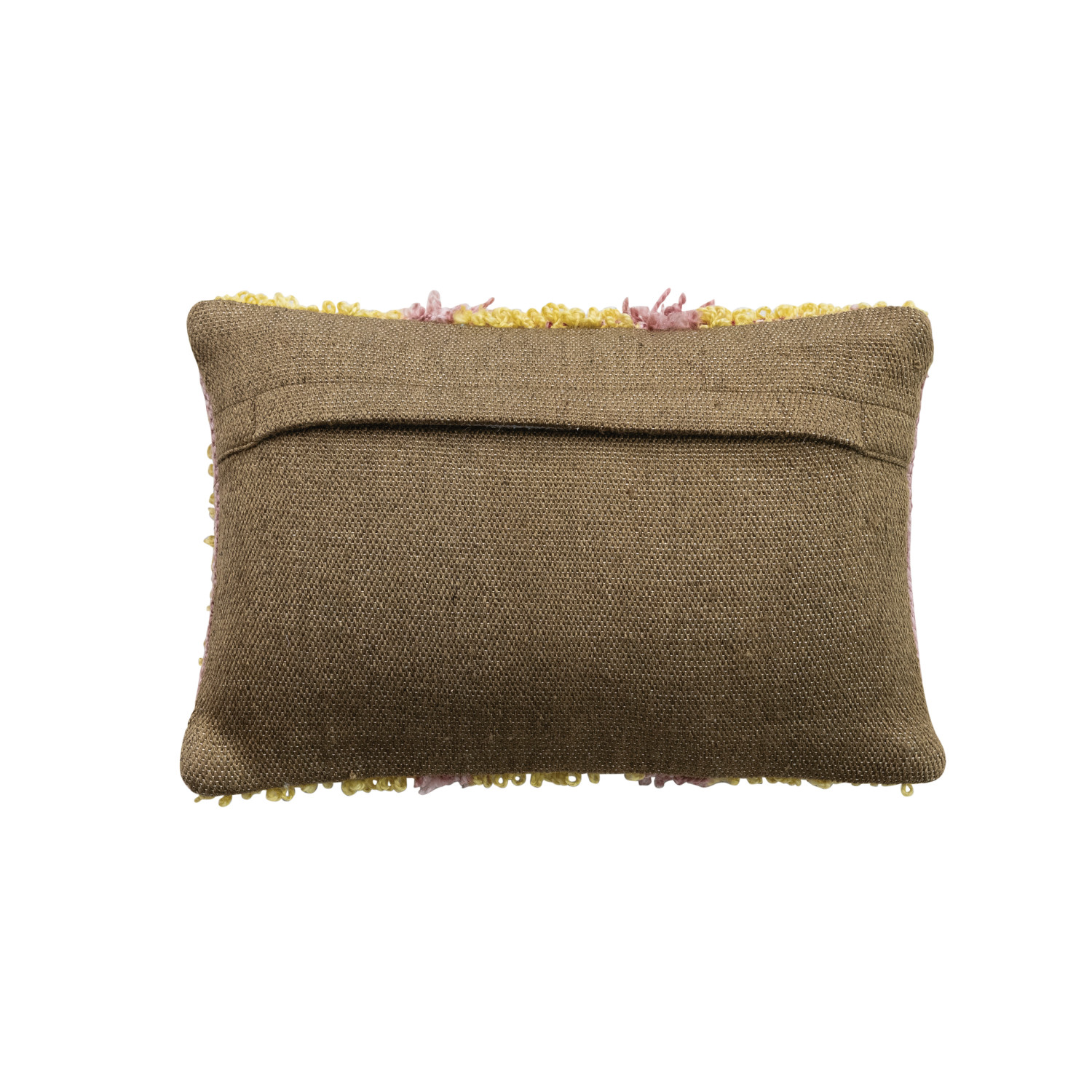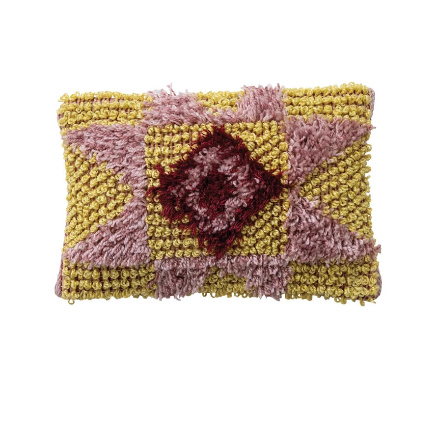 Catalog Name: 14"L x 9"H Fabric Tufted Indoor/Outdoor Lumbar Pillow w/ Design, Yellow, Pink & Red