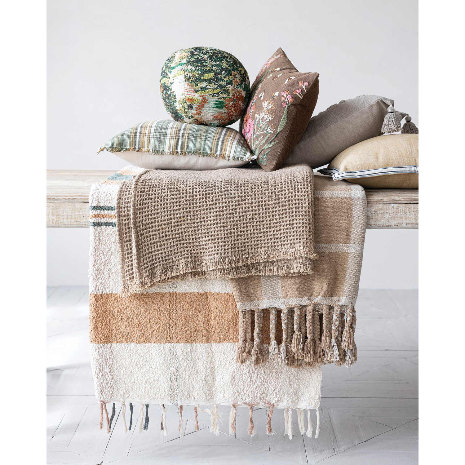 10" Round Fabric Orb Pillow with Landscape & Embroidery