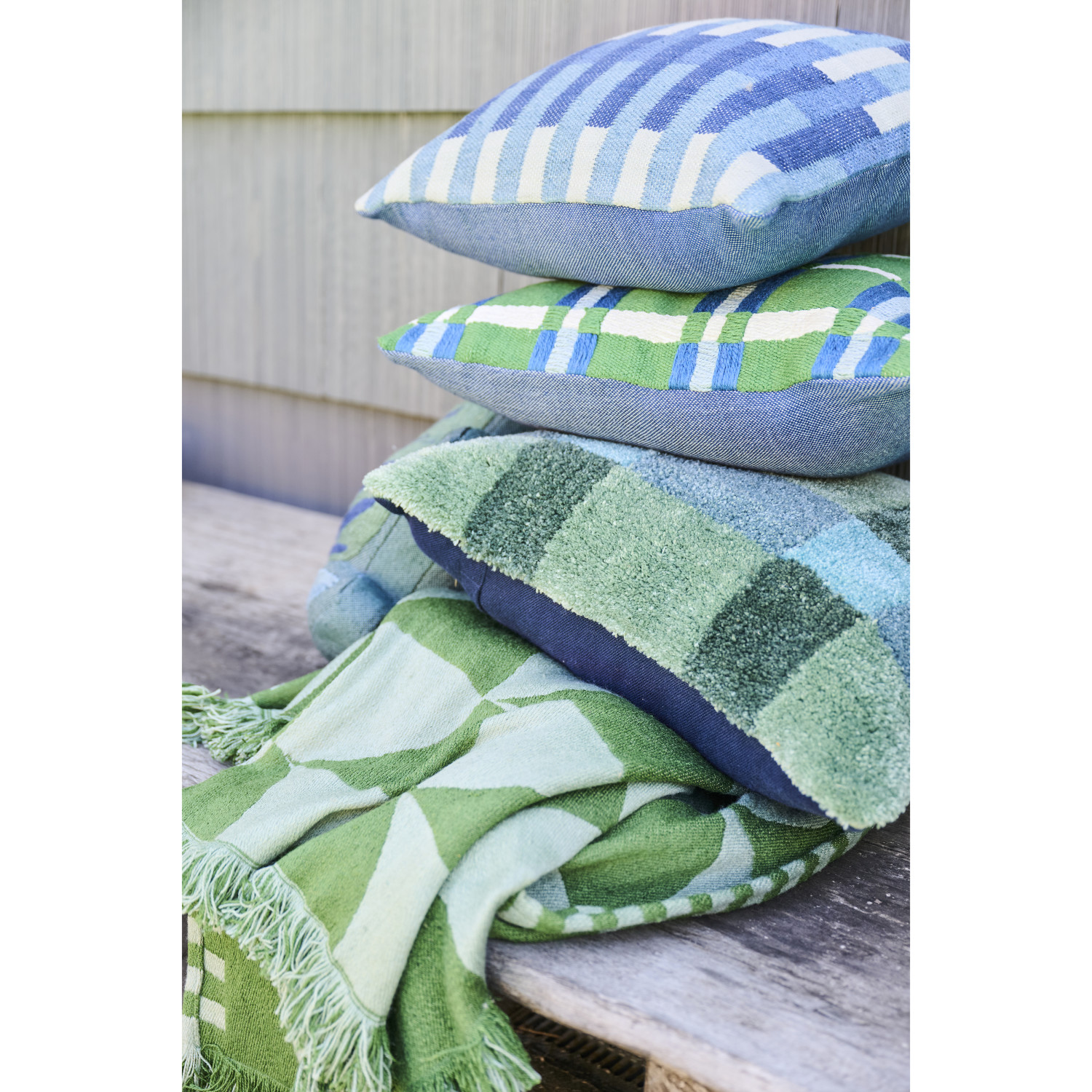 Catalog Name: 18" Square Woven Fabric Indoor/Outdoor Pillow w/ Embroidery & Stripe Pattern, Blue & Cream Color