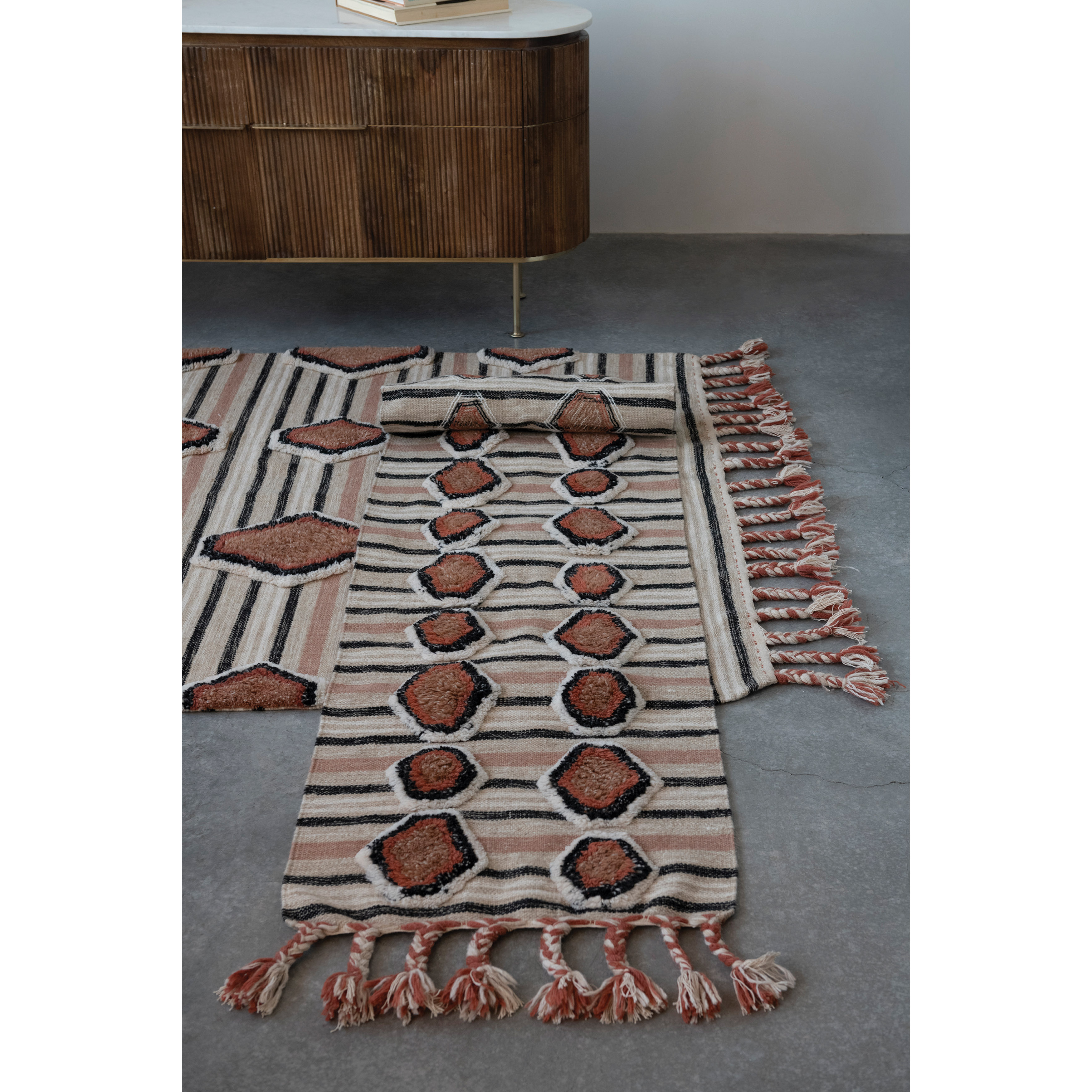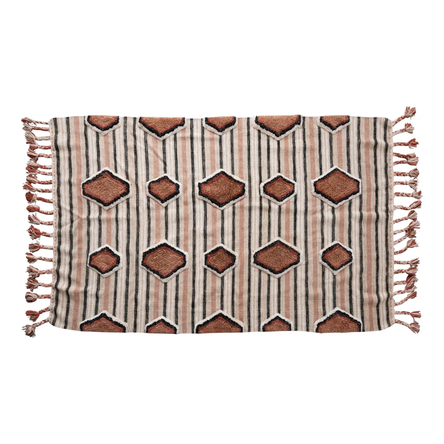 Cotton Tufted Kilim Rug with Braided Tassels