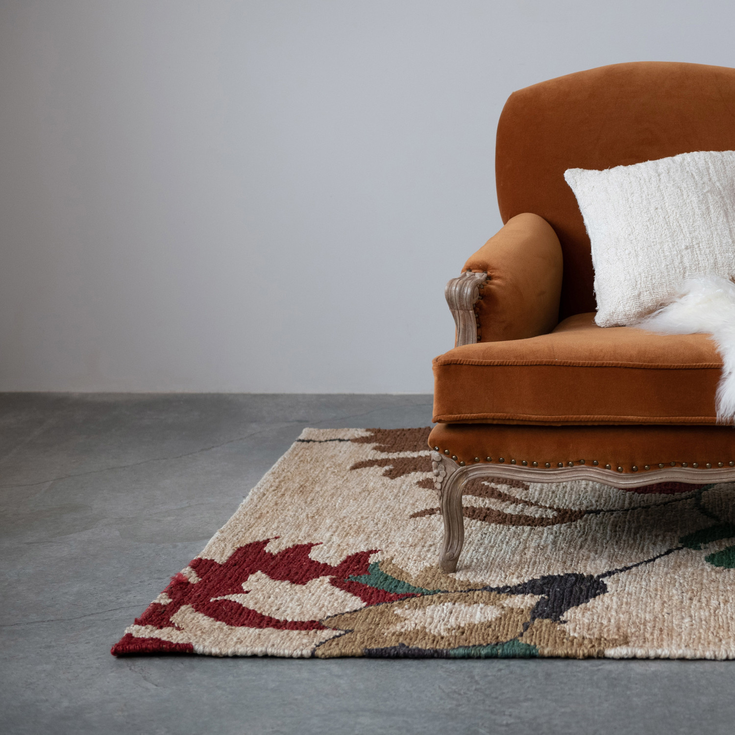 This boldly designed rug showcases intricately woven jute with a multicolor botanical design.