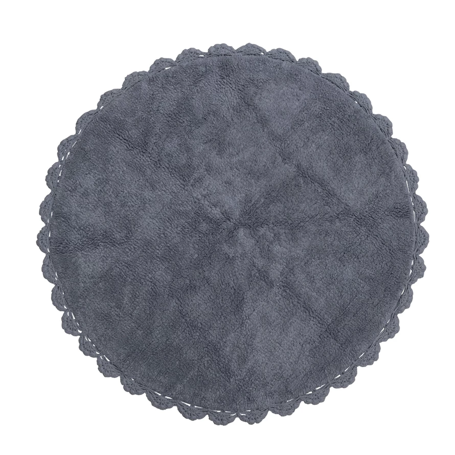 Catalog Name: 3' Round Cotton Tufted Rug w/ Crocheted & Scalloped Trim, Grey