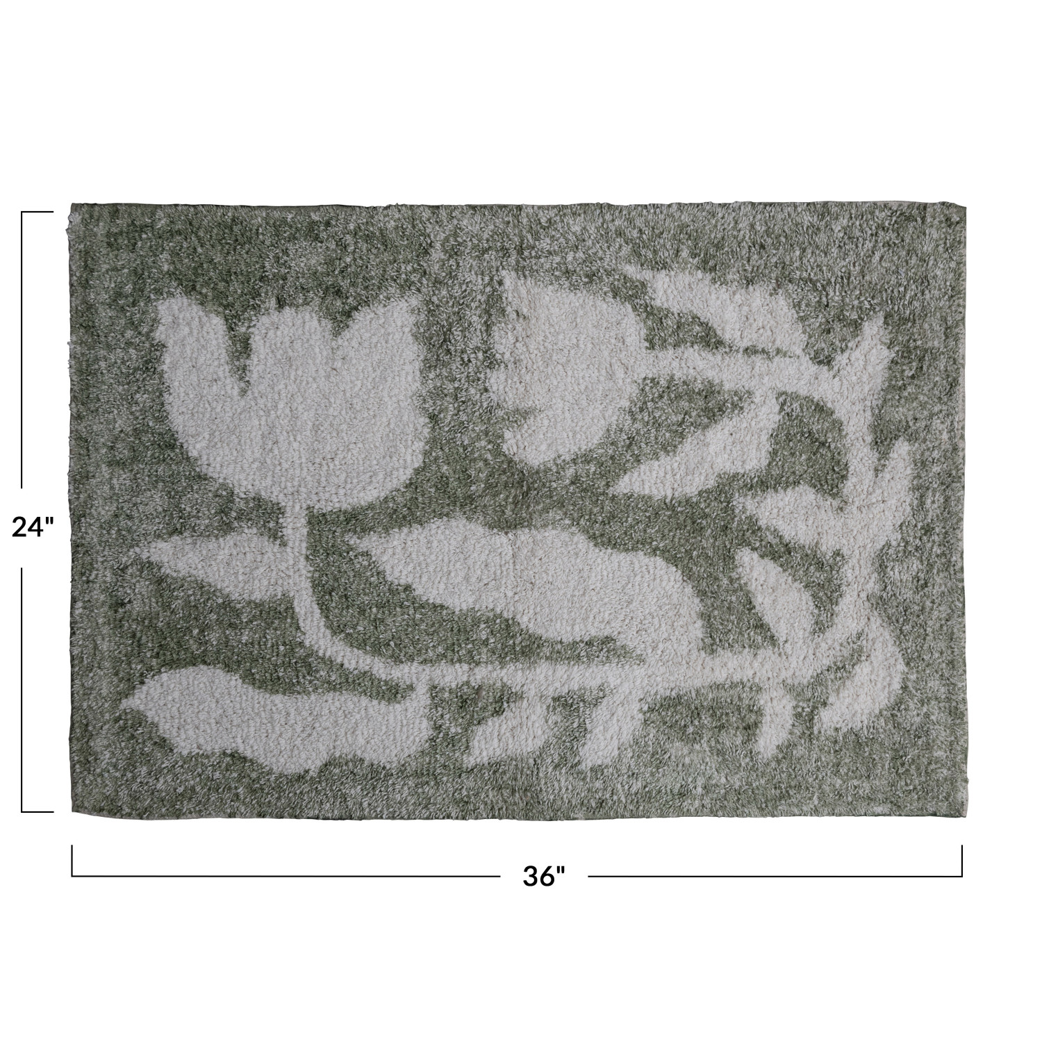 Catalog Name: 2' x 3' Cotton Tufted Rug w/ Flowers, Sage Color & White