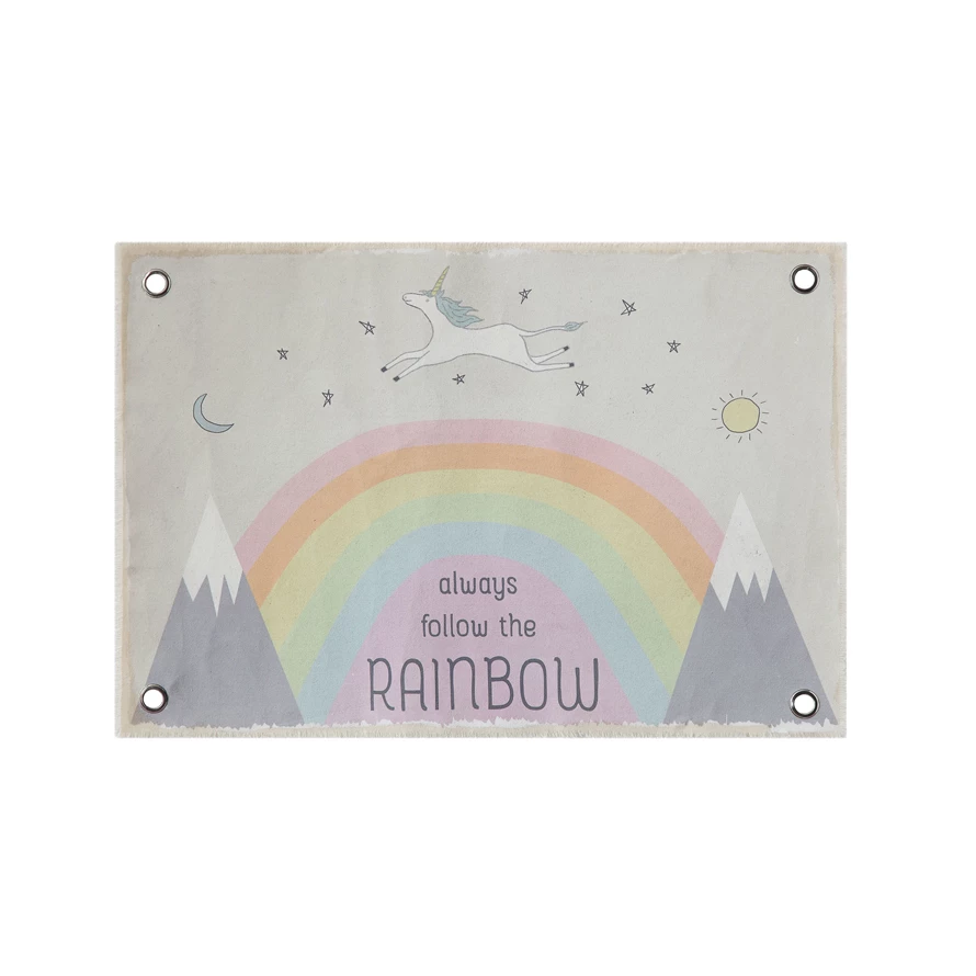 Catalog Name: 26"W x 17-3/4"H Canvas Wall Décor w/ Rainbow & Grommets "Always Follow the Rainbow"