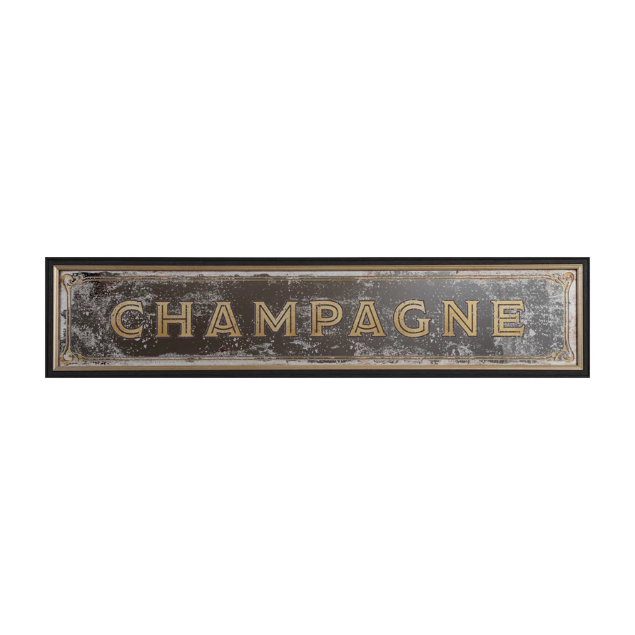 Catalog Name: 38-1/4"W x 8-1/2"H Plastic & MDF Framed Wall Décor w/ Antique Mirror "Champagne", Black & Gold Finish
