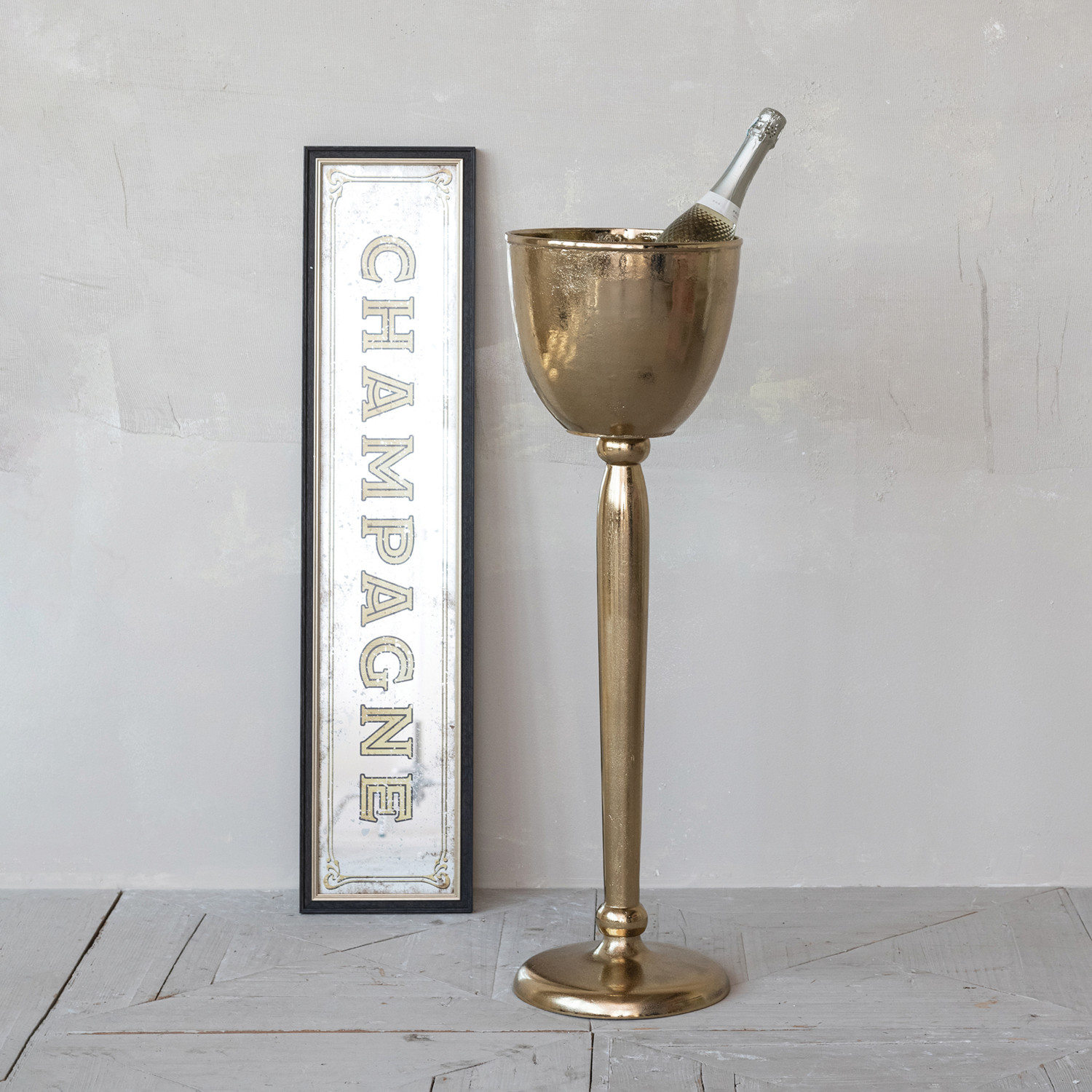 Plastic & MDF Framed Wall Décor with Antique Mirror "Champagne"