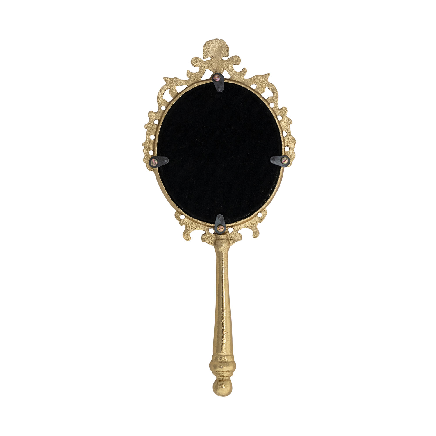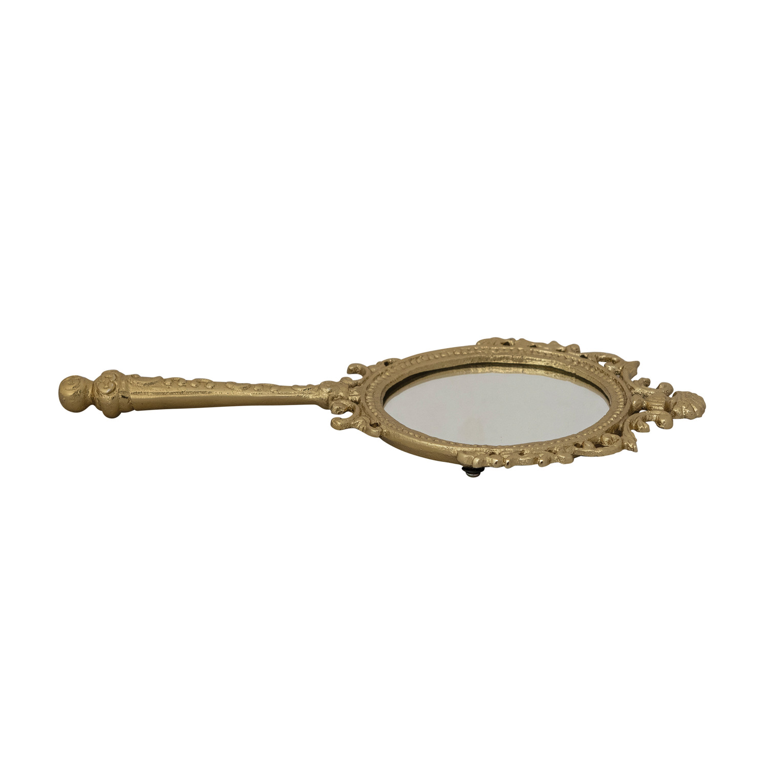 Embossed Metal Framed Hand Mirror, Antique Gold Finish