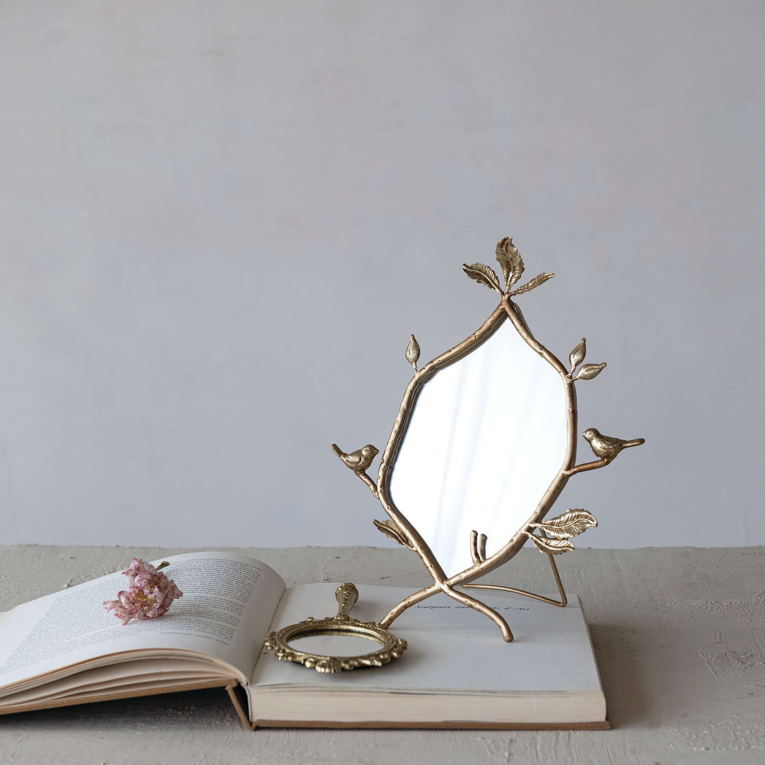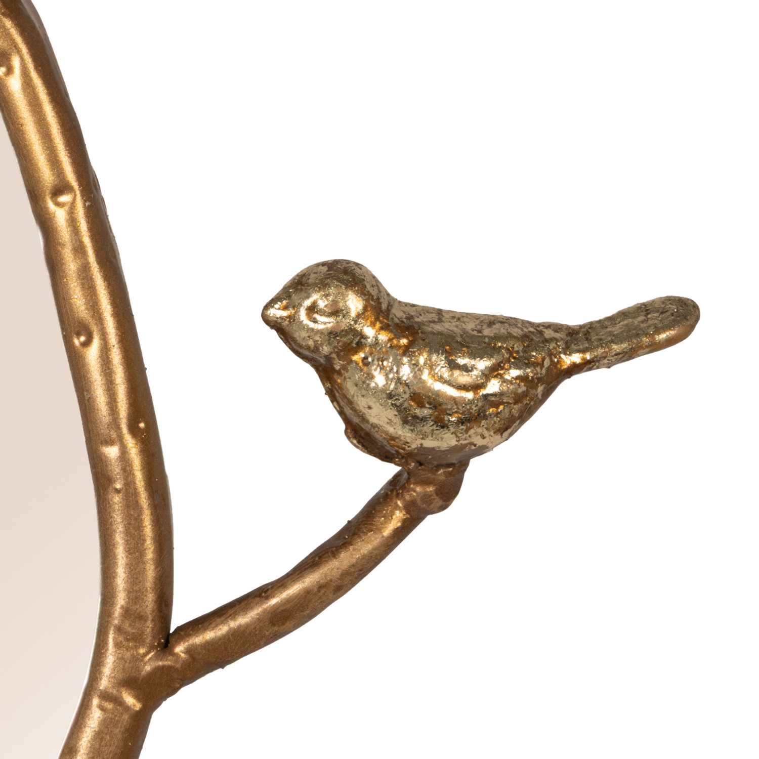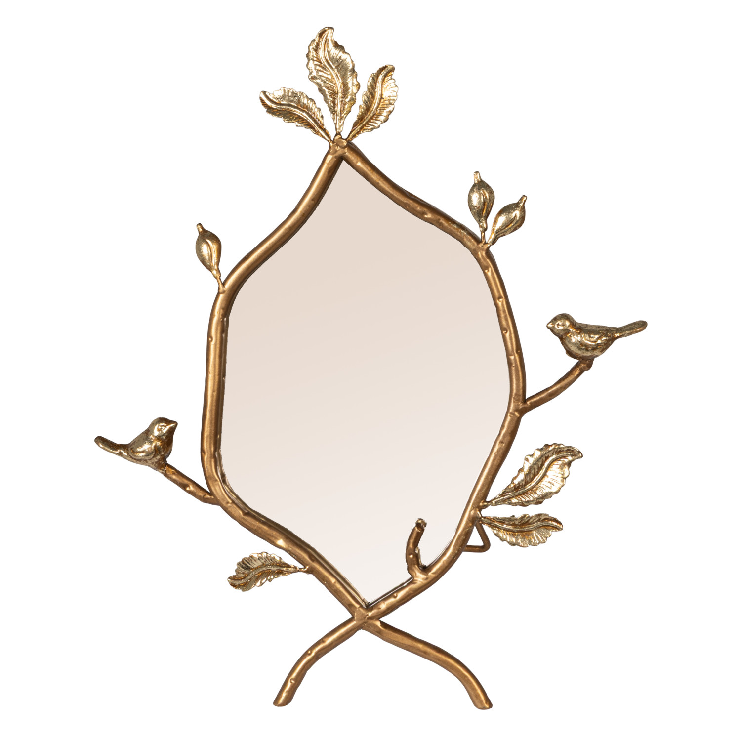 Catalog Name: 10-3/4"W x 12-1/2"H MDF & Metal Twig Framed Standing Mirror w/ Birds & Leaves, Gold Finish