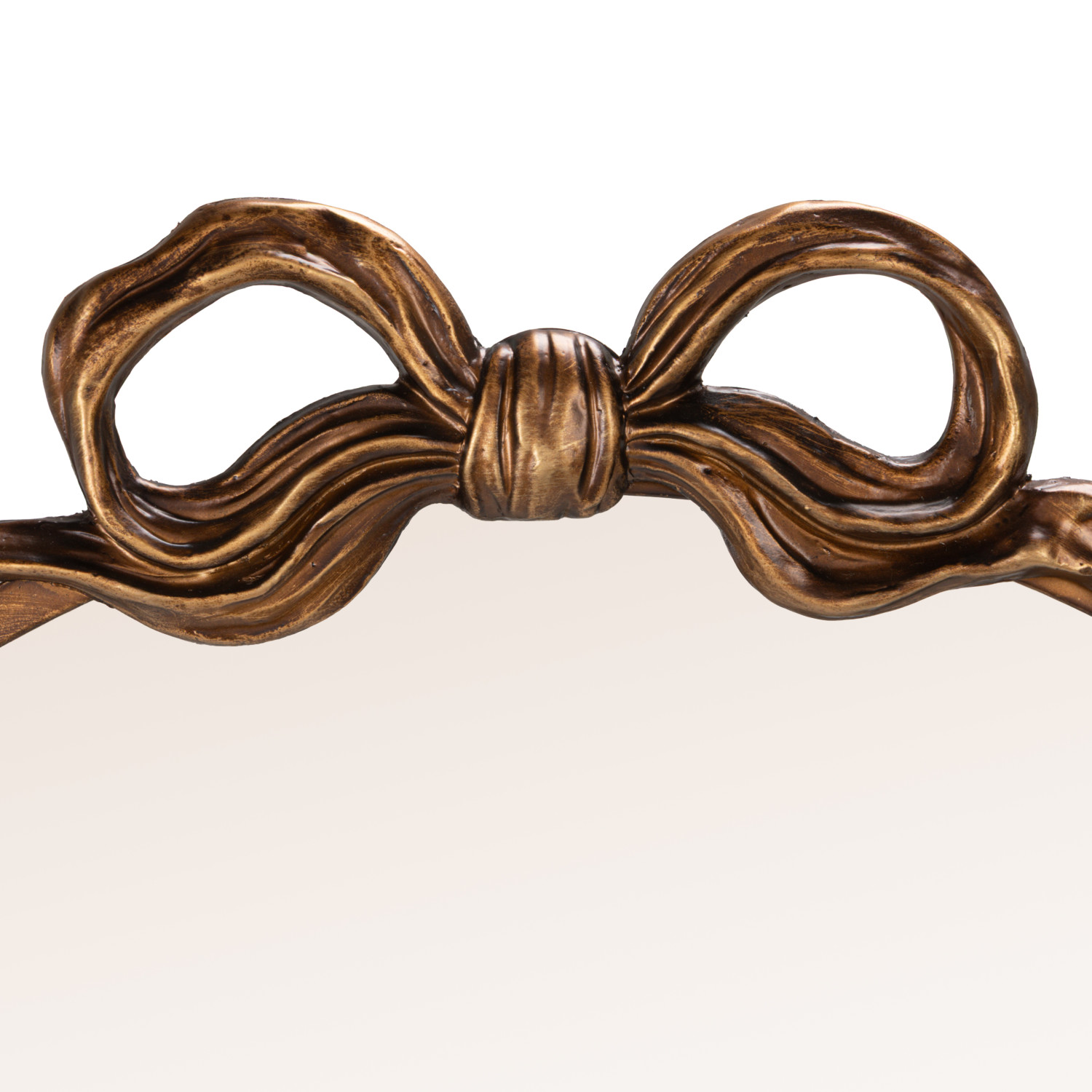 Metal Framed Wall Mirror with Bow, Gold Finish