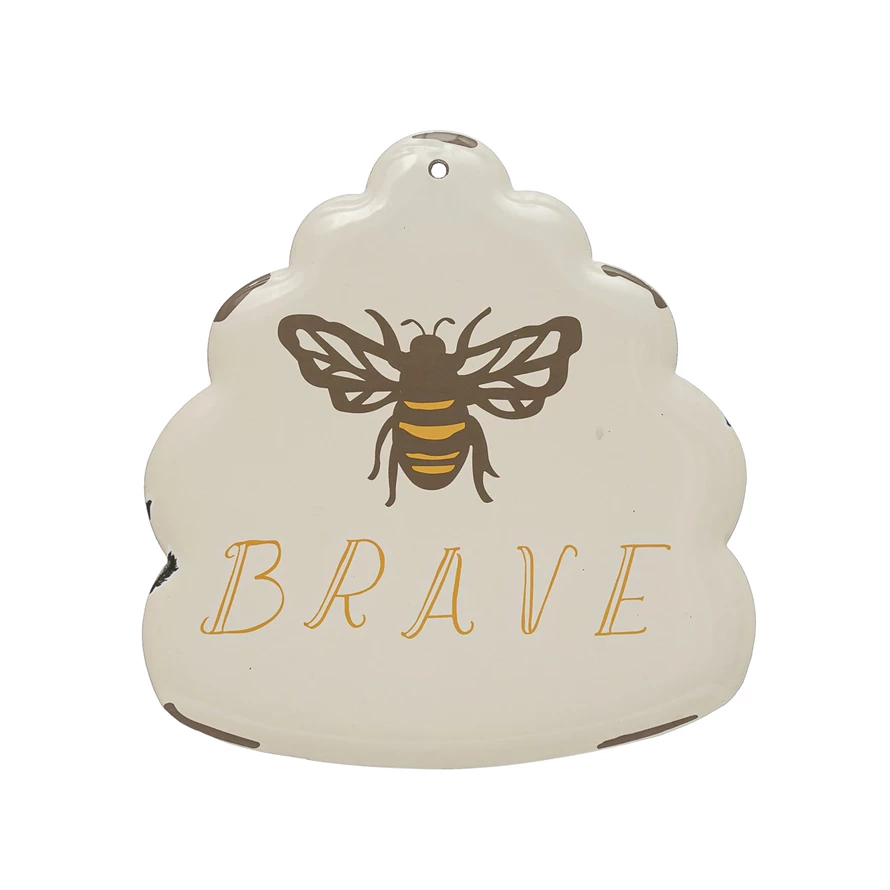 Enameled Metal Wall Décor with Bee "Brave"