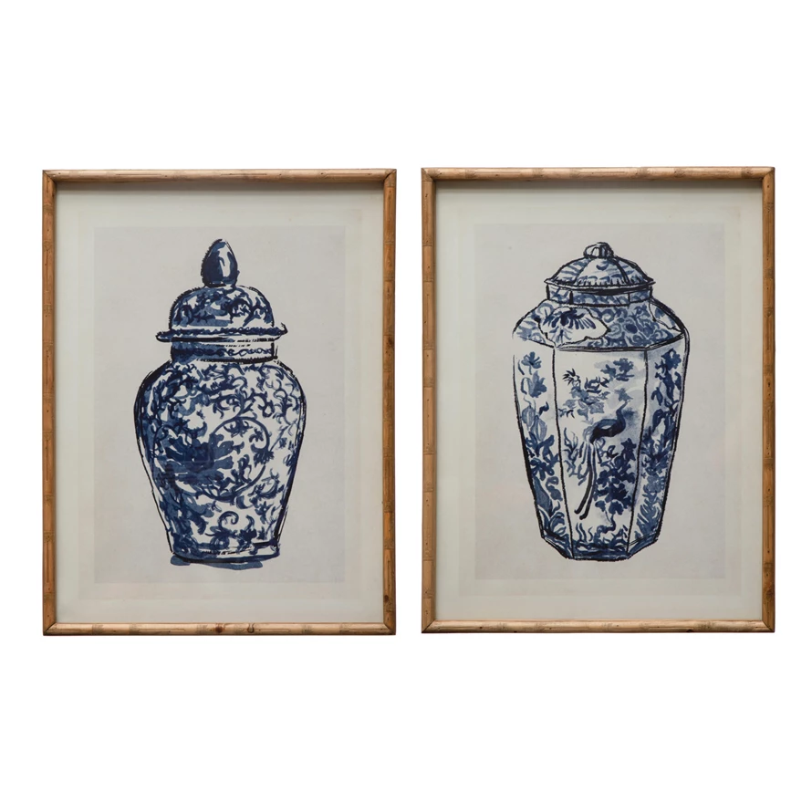 From framed canvases and abstract art compositions, to vintage reproductions and botanical prints, our carefully curated collection of wall art has the perfect item to complete any space. Explore an expansive catalog of pieces including nature-inspired prints, line drawings, inspirational quotes, hand-painted designs, and so much more. Choose from a vast selection of materials from glass and wood to canvas and fabric, and styles from contemporary boho and mid-century modern to classic farmhouse and vintage glam. Effortlessly amplify a room's dimensions, express personal style, create a stylish focal point, or simply make the perfect design statement or unique addition to a gallery wall. This timeless set of wall art features two styles of ginger jar illustrations encased in wood frames with glass covers. Display in a living space of any style from traditional to global. Equipped with mounting hardware on back for easy hanging. Made from wood and glass.
