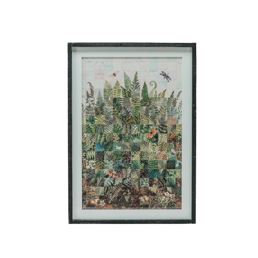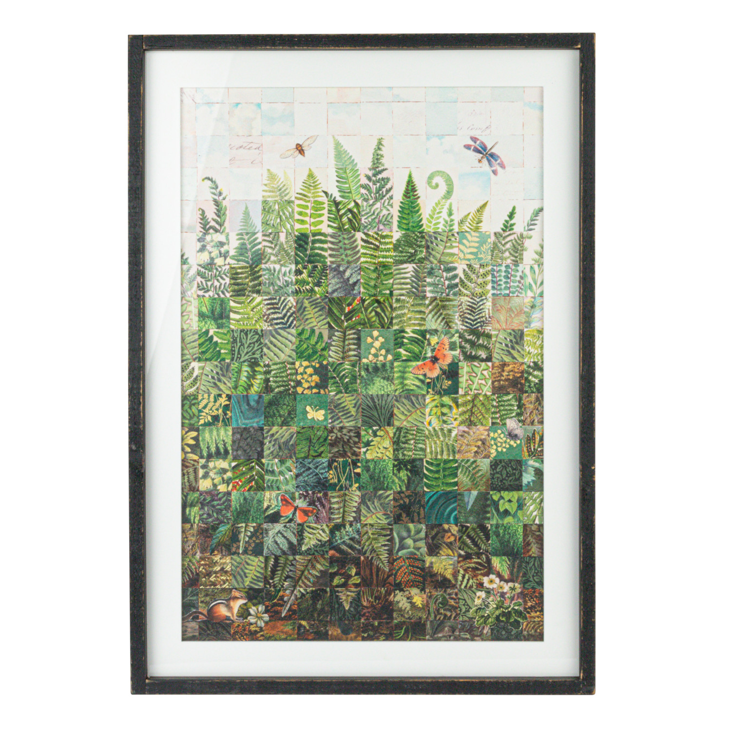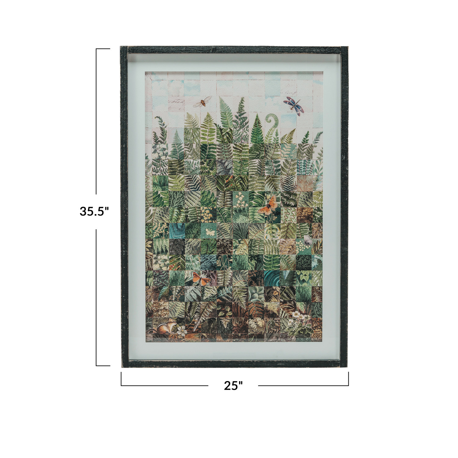 Catalog Name: 25"W x 35-1/2"H Wood Framed Glass Wall Décor w/ Fern Fronds Print, Multi Color ©