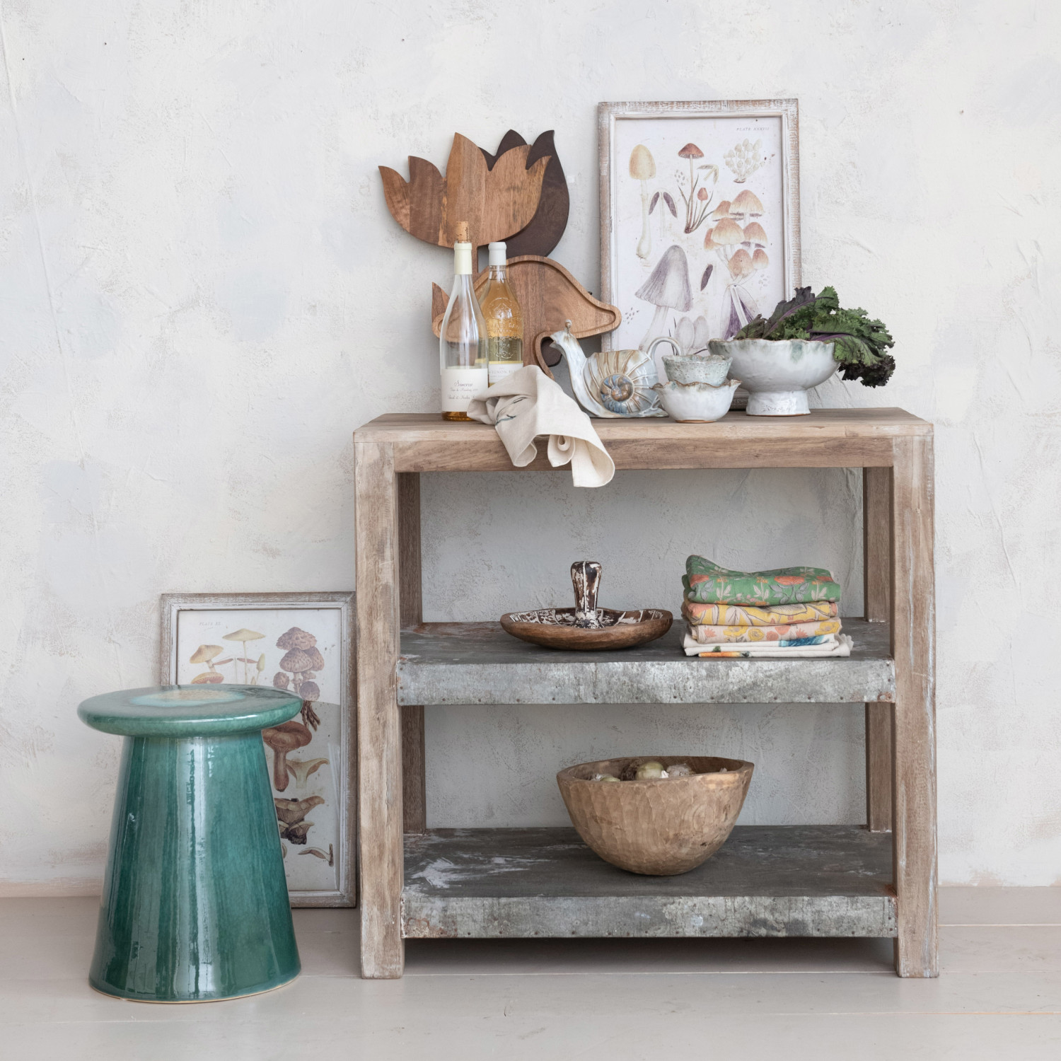 Catalog Name: 13-3/4"W x 21-1/2"H Wood Framed Glass Wall Décor w/ Mushrooms Print, Distressed Whitewashed, Multi Color, 2 Styles