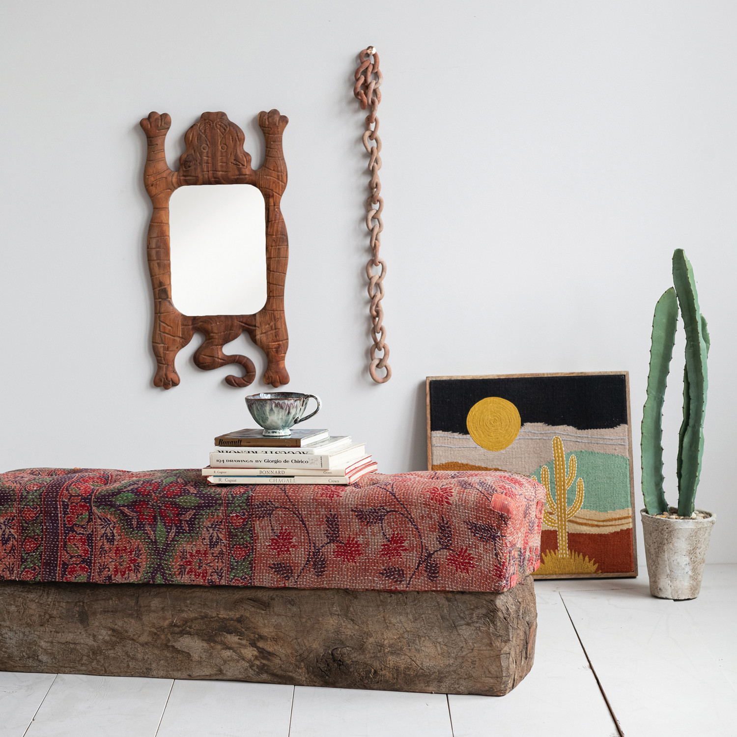 Wood Framed Woven Cotton Blend Embroidered Wall Décor