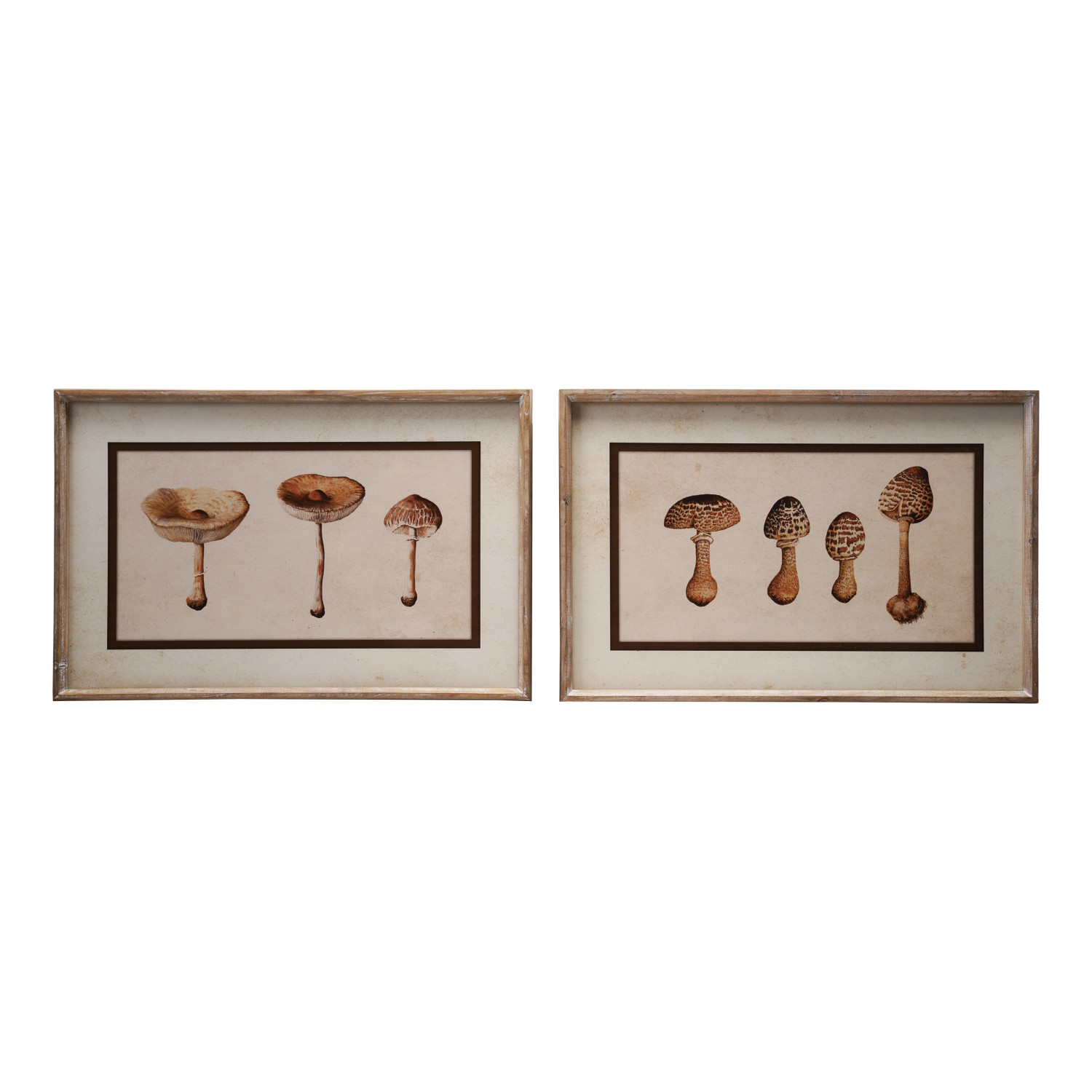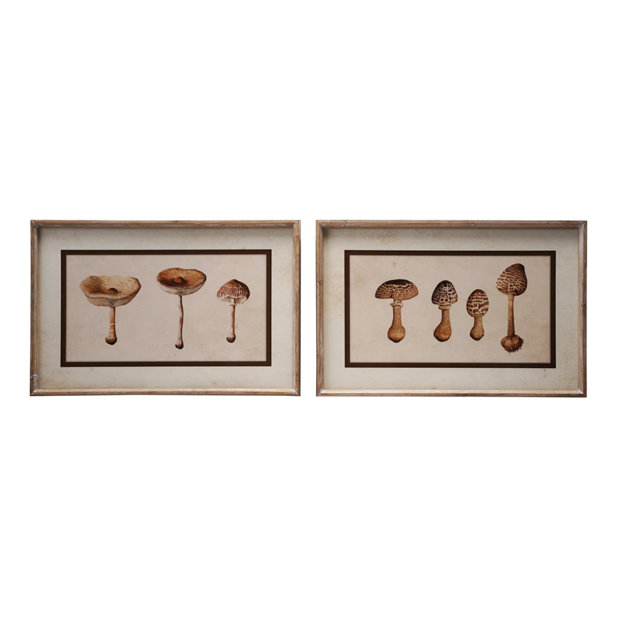 Wood Framed Glass Wall Décor with Mushrooms, 2 Styles