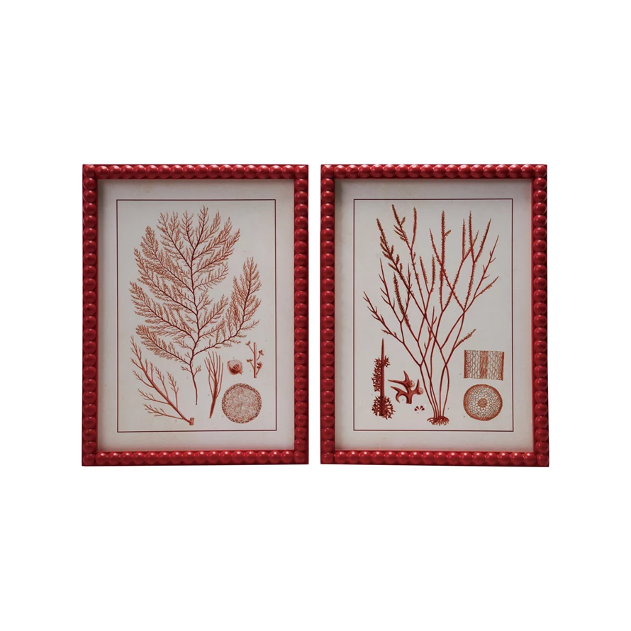 Catalog Name: 11-3/4"W x 15-3/4"H Wood Framed Glass Wall Décor w/ Coral Image & Hobnail Frame, Red, 2 Styles