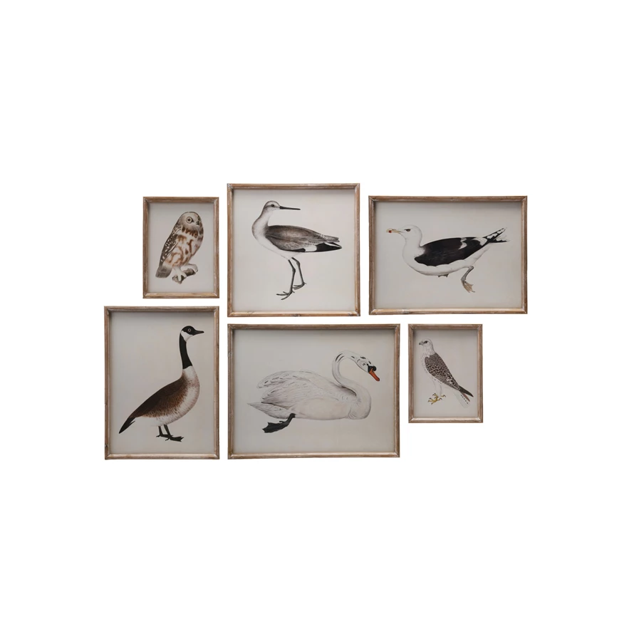 Wood Framed Glass Wall Décor with Bird Images, Set of 6